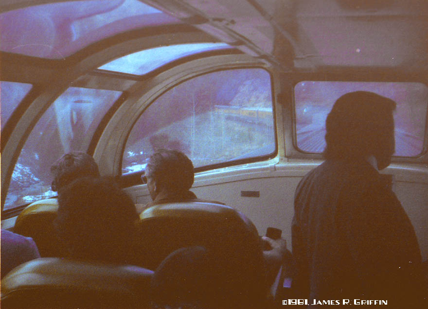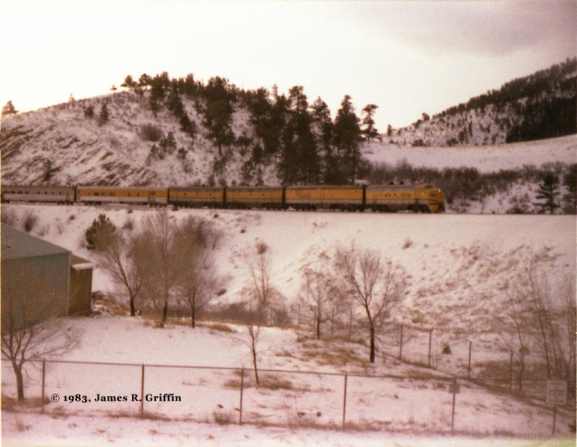 So, on November 7th, 1981, we drove down to Denver Union Station for boarding. As we crossed the old 20th street viaduct, the train’s head end came into view, and my heart skipped a beat. F-units, resplendent in luminous Aspen Gold, with the matching head-end cars and stainless-steel train stretched out behind, were a striking sight at 6:45 in the morning. This was gonna be great!