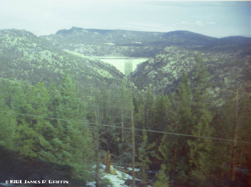 Midway through the tunnel district, rounding the sweeping curve at Crescent siding, we had a nice view of Gross Reservoir, a distinctive landmark of the route. It’s a key component of the water supply system for the city of Denver; South Boulder Creek runs into and out of it.