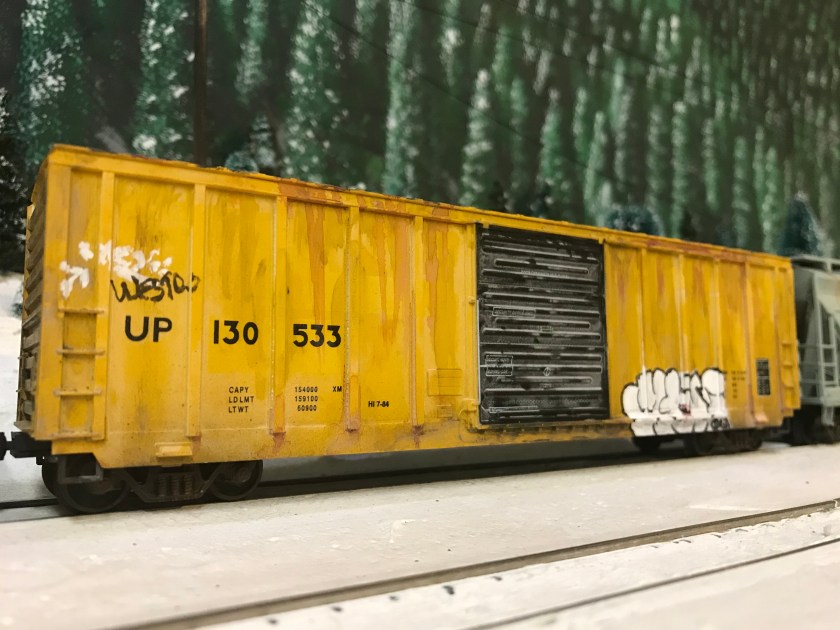 In my case, I have what might be called a medium-sized pike. (You know, I have never liked that word; makes me sound like John Allen or something. Let’s switch to “railroad”.) My railroad hosts multiple eras, which means that I own a LOT more rolling stock than is strictly necessary for any given day. This, of course, has implications for the budget. As a result, I buy a lot of inexpensive, shake-the-box kits whenever possible. Now, anyone who’s looked very carefully at this class of car realizes that they can lack a lot of realism; the detail can be chunky, the paint jobs marginal, and all this is emphasized if you just assemble one and drop it on the rails as-is.