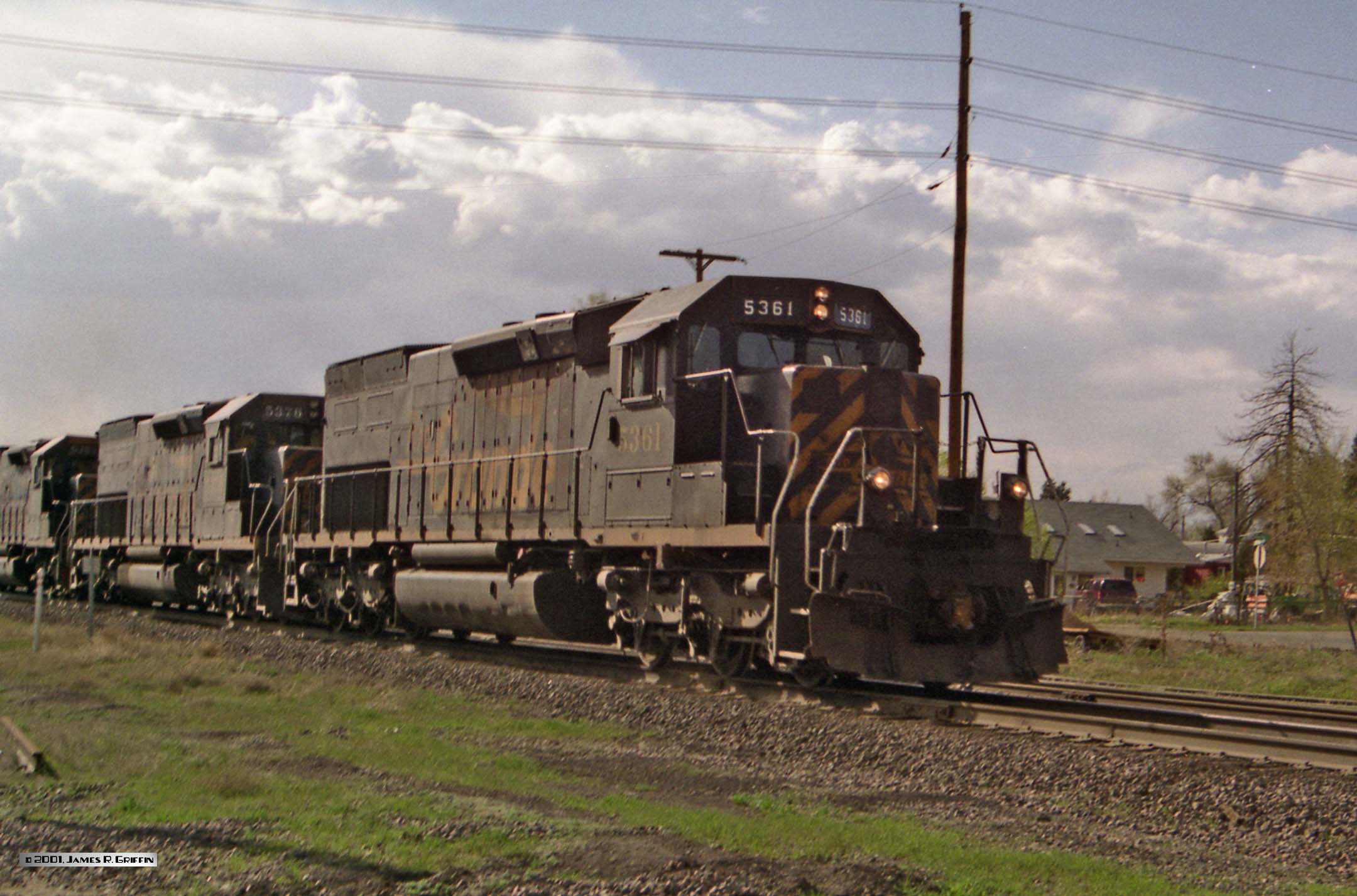 No. 5361 is from Rio Grande’s second batch of SD40T-2’s, running the rails since 1975. This unit was seen often around in Colorado at this time, but she would be retired before year’s end with a major component failure.)