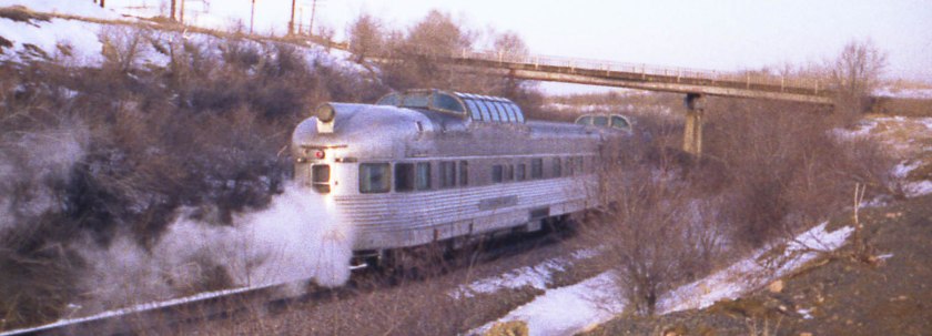 I was fortunate to be able to chase this train two more times in the 1984 season, both times with a better camera. But I have always been thankful that I went out on that chilly afternoon to capture this final run with F9s leading and domes trailing.