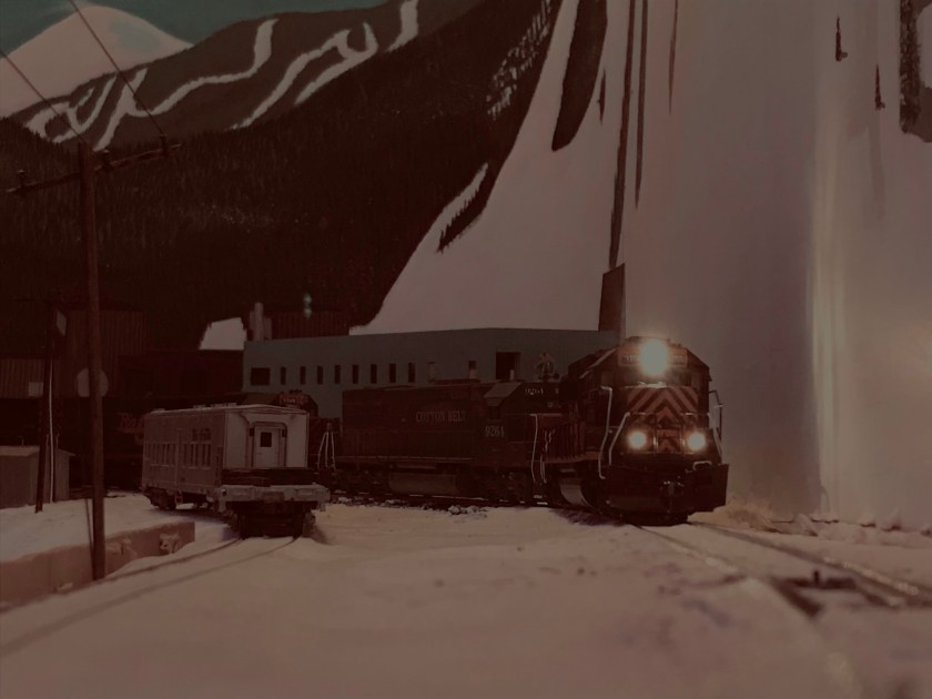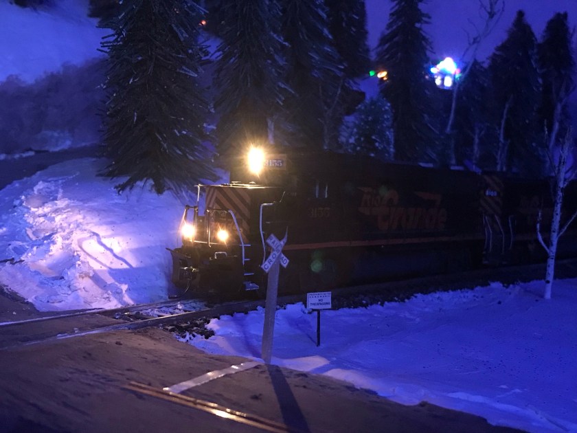 OK, so we’ve gotten the room lighting. But I seriously suggest you think about installing a few things to light up the landscape at the scale level. In my case I don’t have much urban area, which simplifies things somewhat. However, I have installed area lighting at the Winter Park ski lodge, in the North Yard area, on various structures in Hideaway Park, and eventually at Union Station. Everything else goes on the trains themselves.