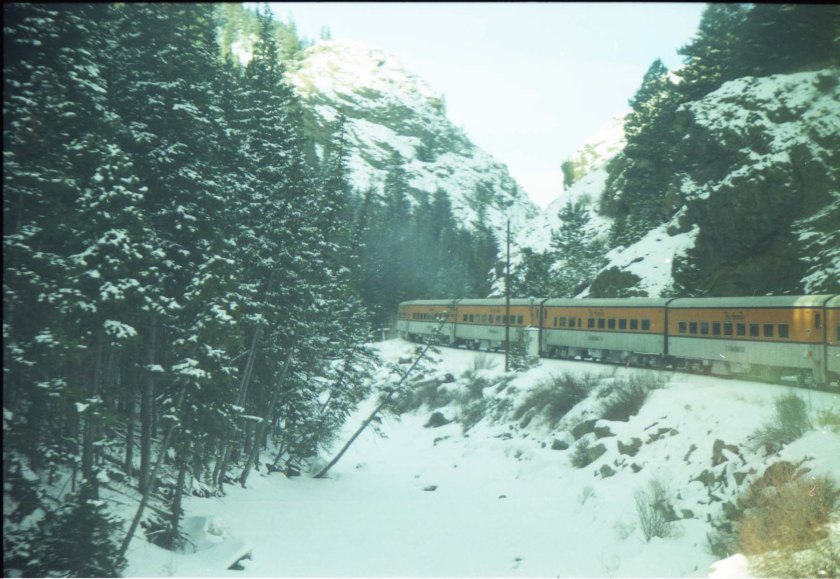Remember, this was long before digital cameras were the norm. Everything then was shot on film. Some of our Ski Train trips were extensively videoed; most had some number of stills taken. Somehow this trip, with its large number of frames shot, lay buried in my archives for over two decades, under-appreciated all that time. Now I get to relive some of those memories, and share them. The contemporary Winter Park Express runs the same route and we’re glad to have it, but I really miss the Ski Train. It was a fantastic ride and a unique experience.