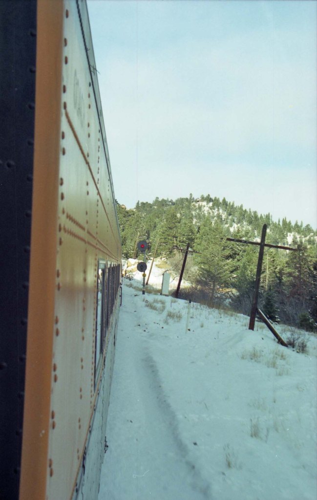 One of these times was on January 29, 2000. After surviving Y2k, we made the journey to Denver to ride the train. Now, one of the perks of this arrangement was that I was allowed to shoot photos and video from open vestibule doors, provided I was escorted by someone from the train’s volunteer staff. This turned out to be no burden at all; I was actually treated a little bit like a celebrity (“You have a website?”) Remember, this was still pretty early in the whole Internet game. If they only knew just how insignificant I really was! Anyway, the morning of the 29th the four of us boarded the train at Union Station and settled in for the two-hour ride.