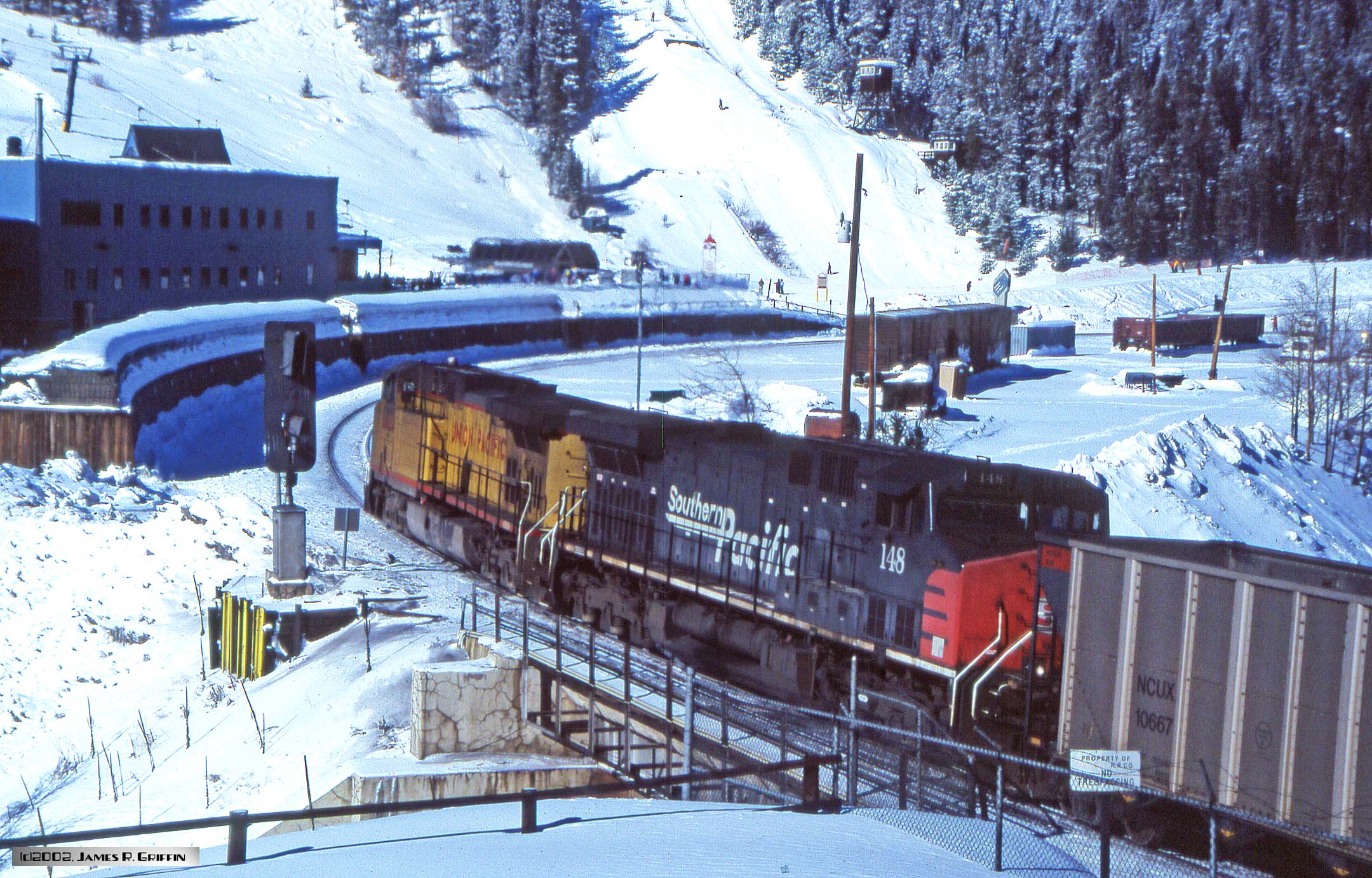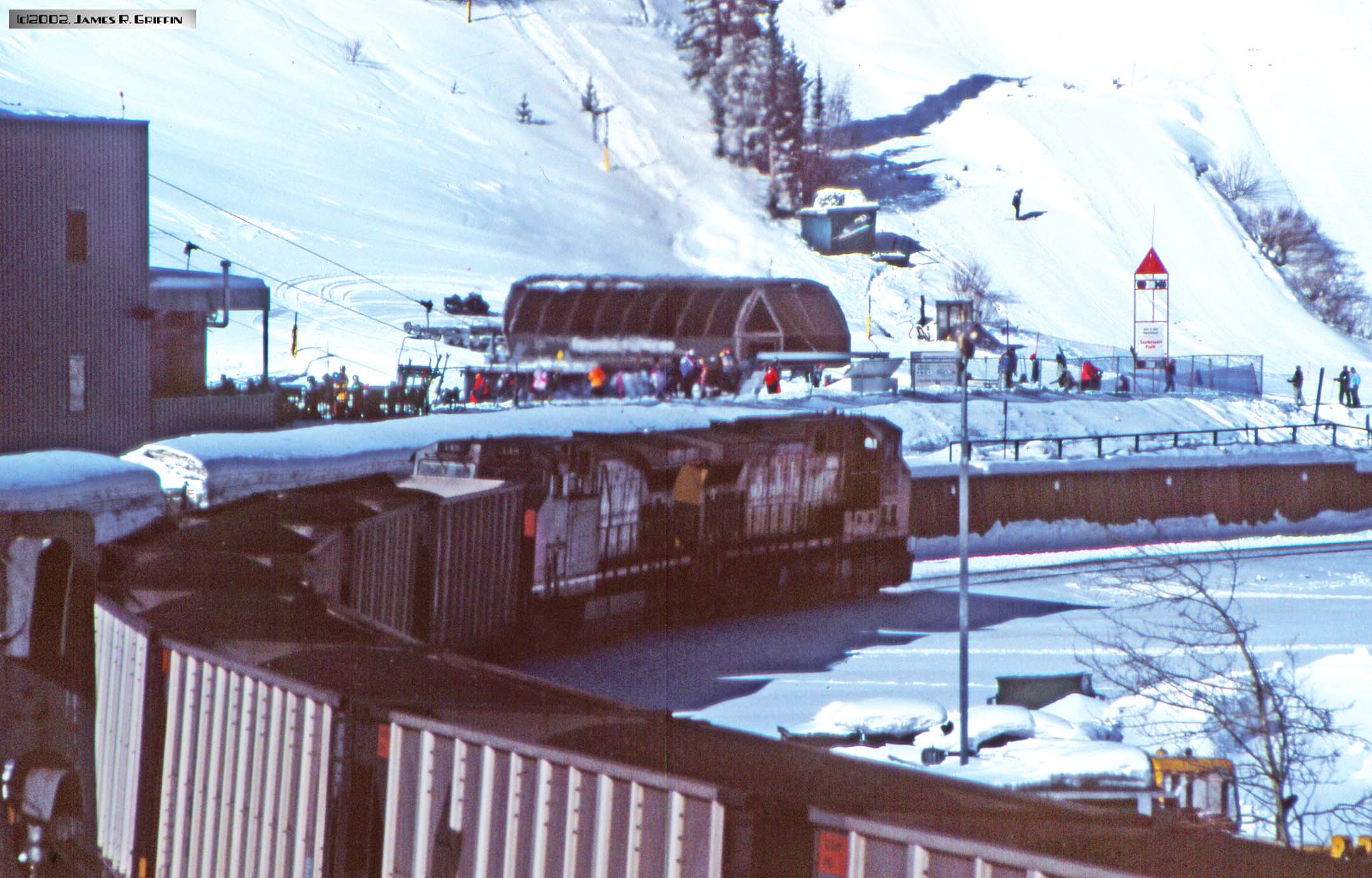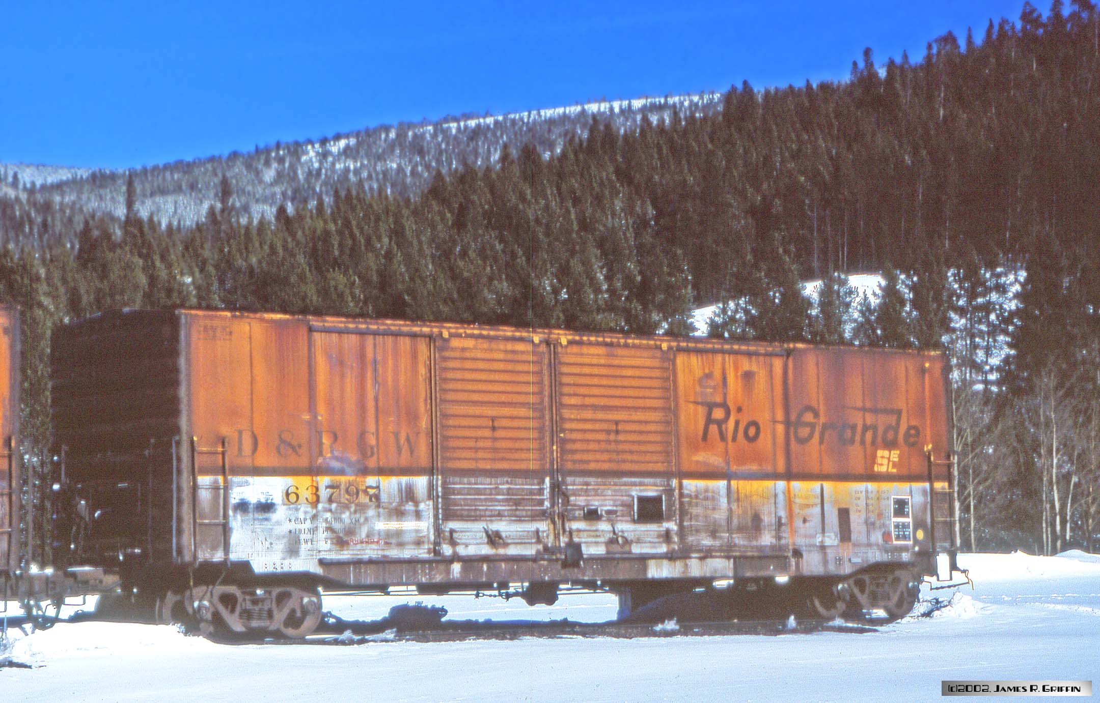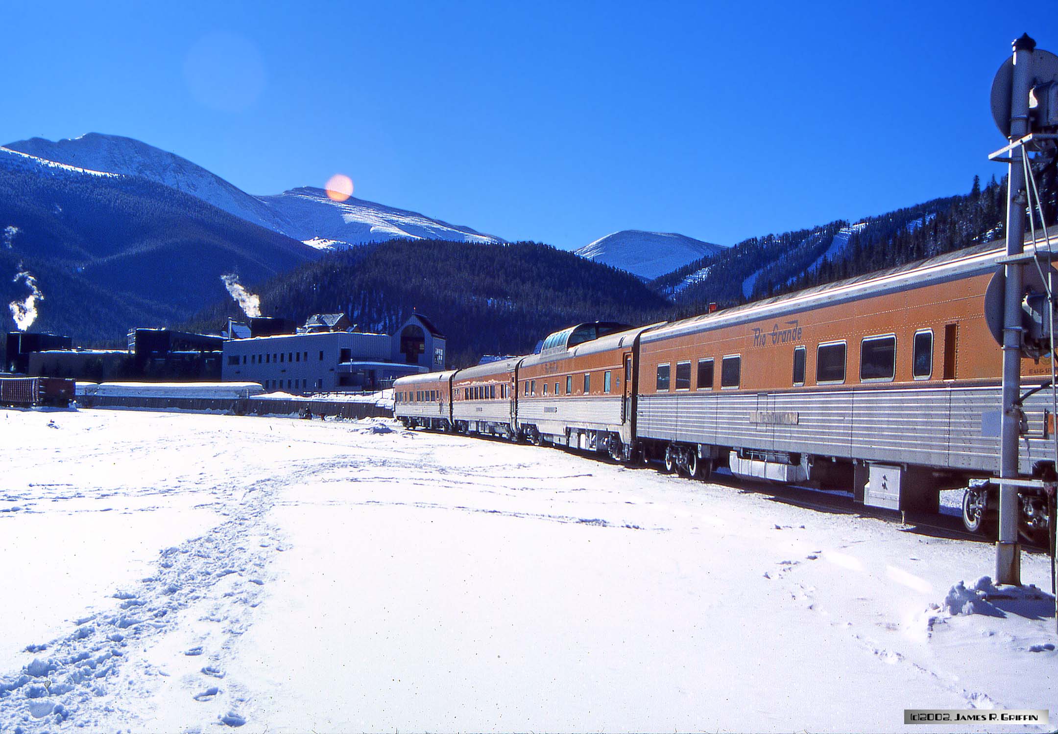 Here is the second installment of Ski Train photos from my archives. The date was February 10th 2002, and I was in the throes of writing a book on the Rio Grande railroad. Accordingly, since I viewed riding the Ski Train as an opportunity to get some imagery for the book, I loaded the camera with slide film instead of print film. Boy, what a difference!