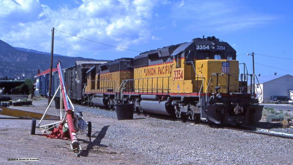 ABOVE: Cedar City, Utah is served by a branch off of the LA&SL line to the west. The branch leaves the main and travels southeast to Cedar City, where it makes a small loop around the downtown area. I happened to come across the local in June 2004, and took this shot. I’m partial to SD40-2’s, no matter whose paint they wear…