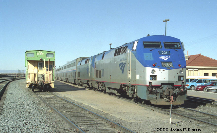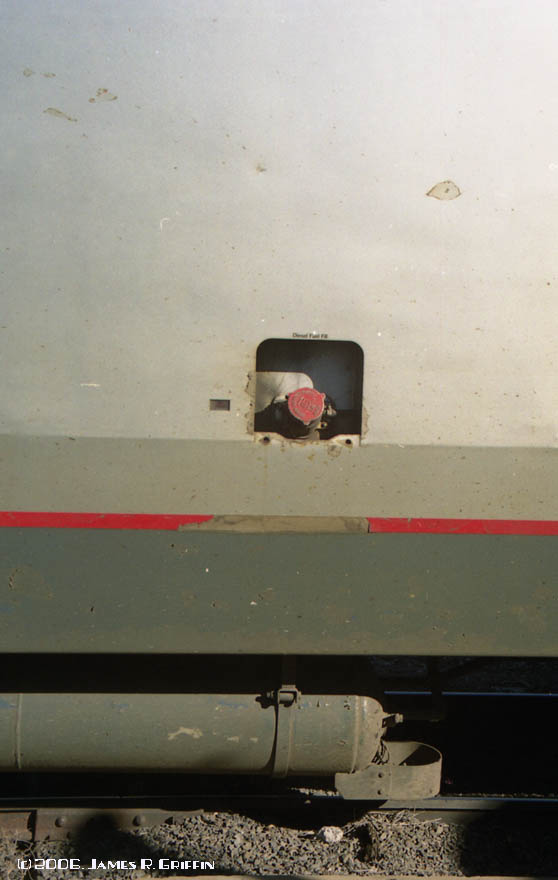 On January 5, 2006, the California Zephyr was run as a stub operation west of Denver, terminating in Grand Junction. As a result, the equipment was parked at the Grand Junction depot and easily accessible for the entire morning. I availed myself of the opportunity to walk around and take a few detail photos. It helped that the old yard office building has an external stairway and balcony that overlooks the track…