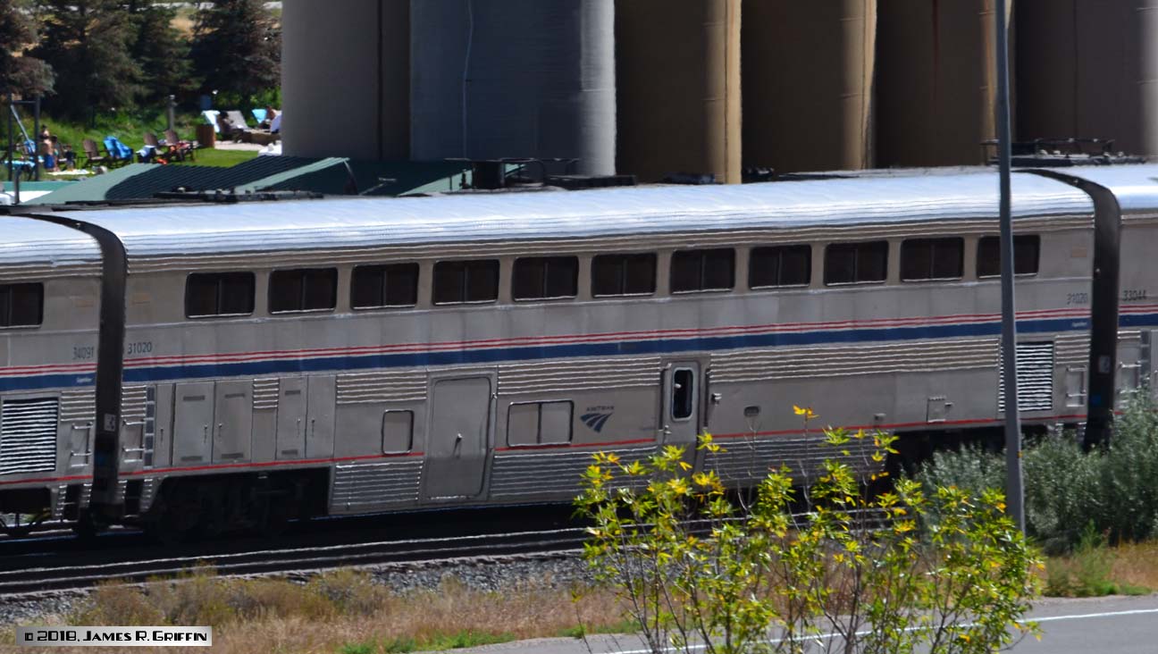Transition Sleeper 39015 is rolling into Glenwood Springs on No. 6, 9/01/2018. |