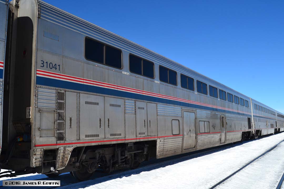 Coach/Baggage 31040Top: in Albuquerque on 2/26/2009. Note that it’s still wearing standard Phase IV lettering, and is labeled as “Coach Smoker”, but has actually been modified back to a coach/baggage configuration.Bottom: Now in phase IVb, it’s running on the Winter Park Express on 2/18/2018. |