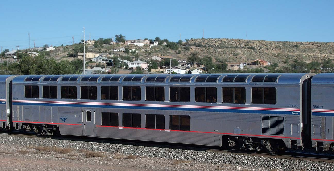 Amtrak’s high-level Superliner cars were inspired by the Santa Fe’s unique high-level Budd cars used on its El Capitan train beginning in 1956. As with the El Cap cars, The diaphragms are located at the upper level, making them incompatible with standard passenger cars without the use of a “transition” car, i.e. one with a low-mounted diaphragm on one end.