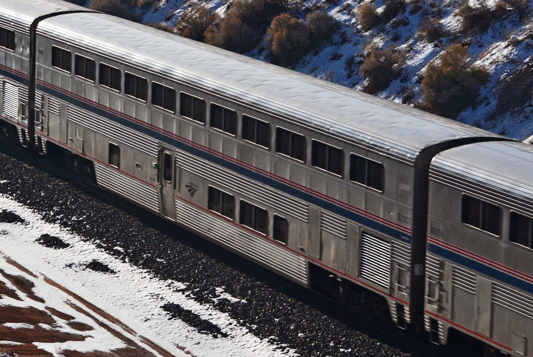 Transition sleeper 39026 on train No. 5, leaving Denver on 12/16/2014. |