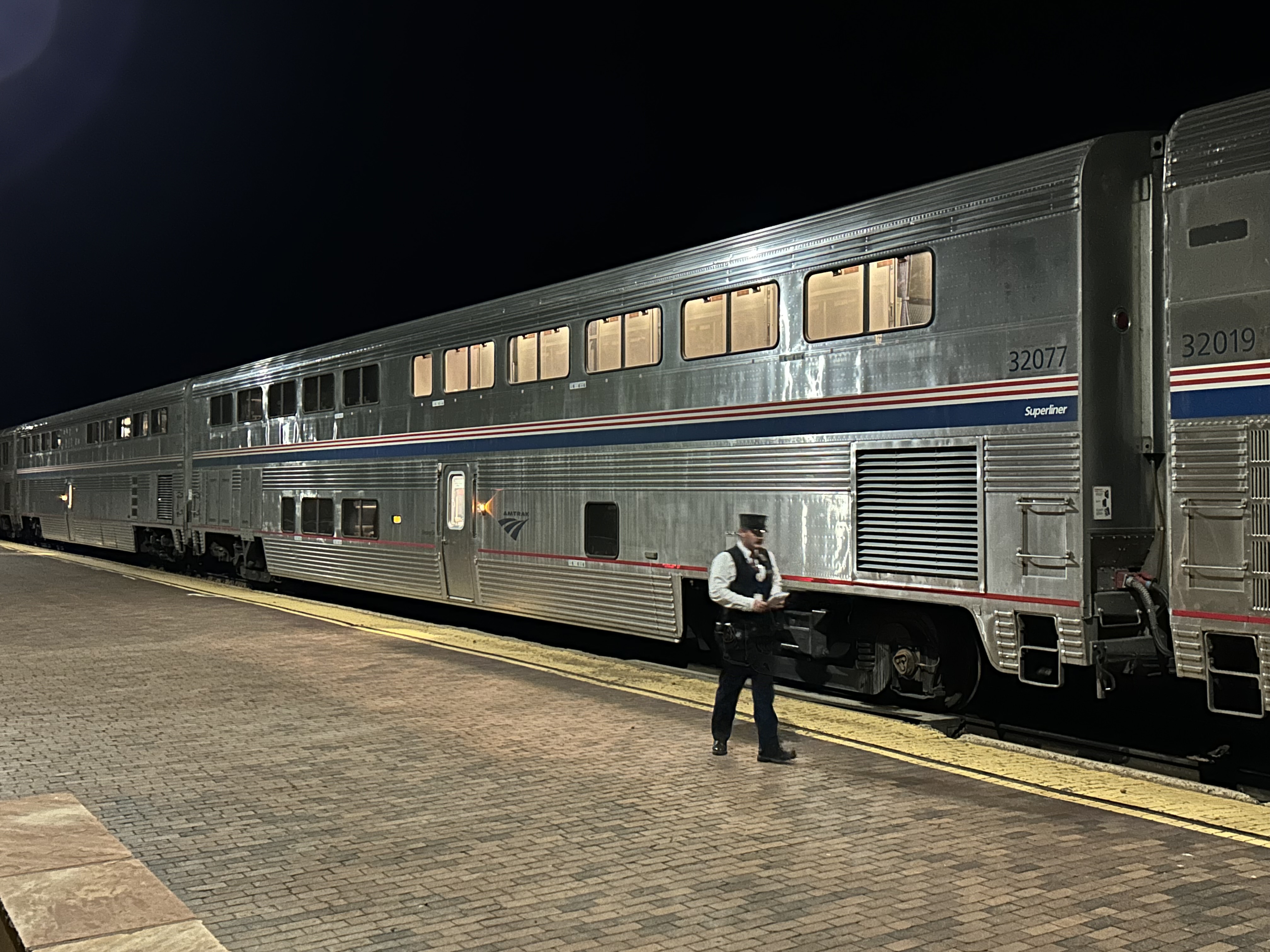 S1 sleeper 32019 Top: On No. 3 at Winslow on August 5, 2024.Bottom: On the return cycle, train No. 4 at Winslow on August 7, 2024. This allows us to get both sides of the car, and to see the contrast between day and night operations.NEW IMAGES |