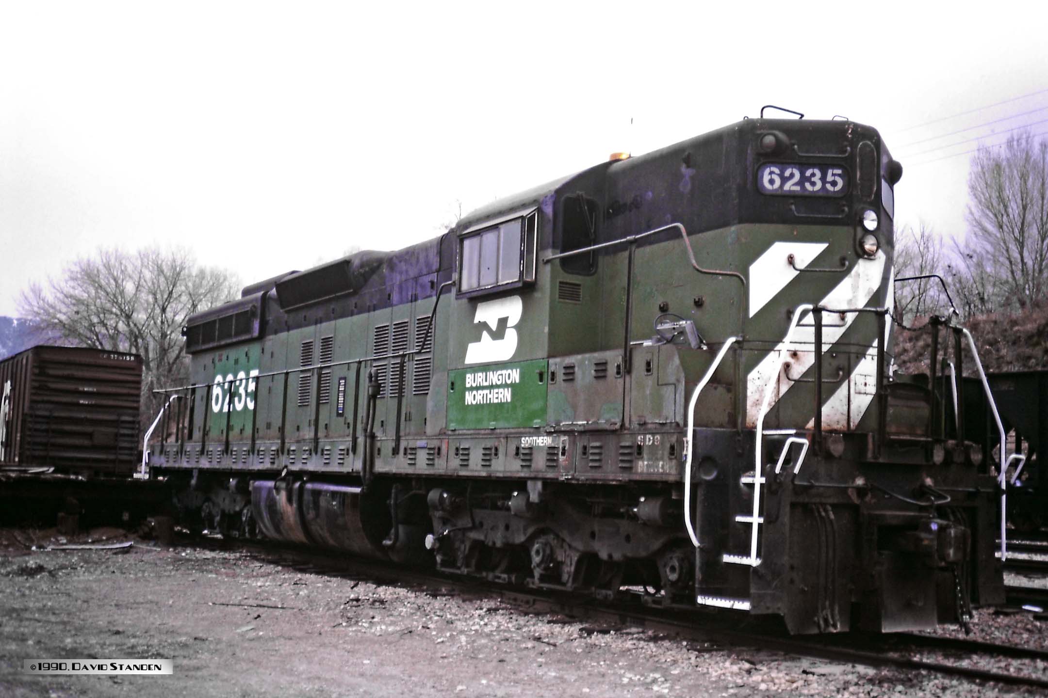 SD9 No. 6235, pictured in Denver in 1990. Note the all-weather window for the engineer. Dave Standen photo. NEW IMAGE |