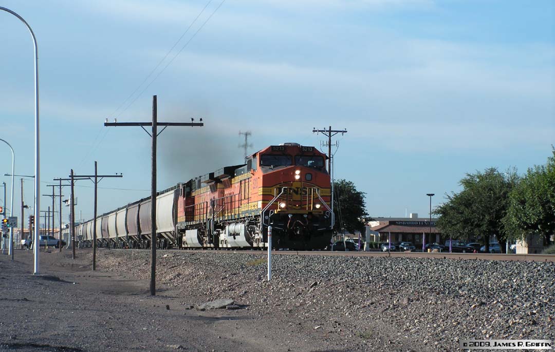 No. 971 leads a northbound freight through Las Cruces on May 12, 2007. It’s already been painted into H2. Built August 1996. |