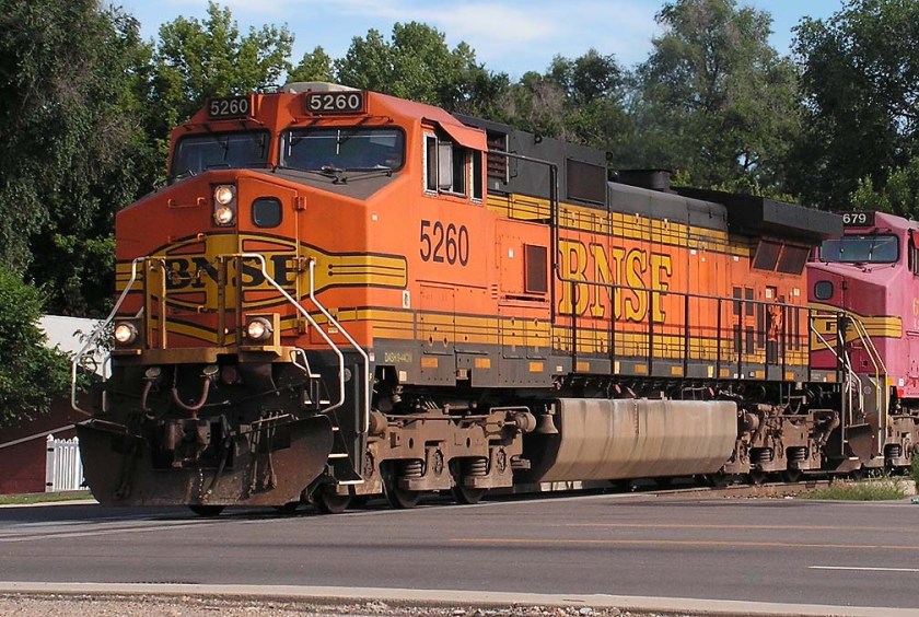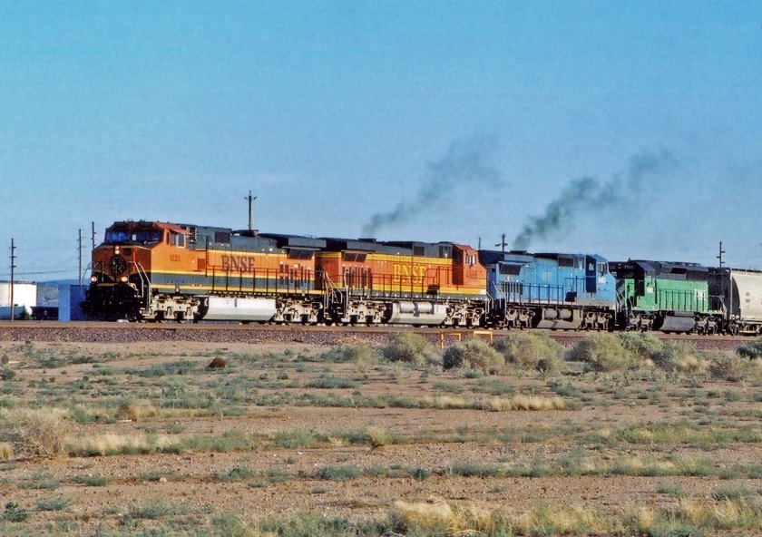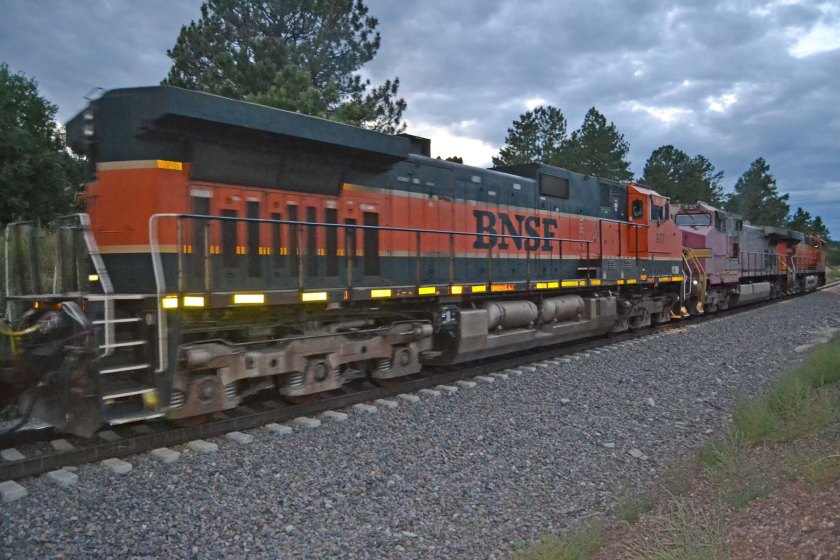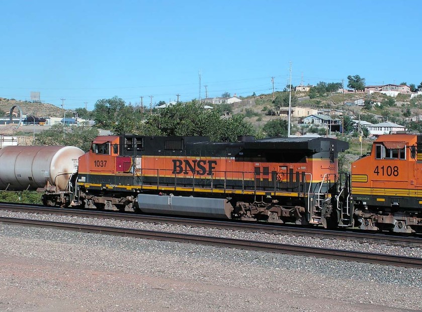 General Electric introduced its Dash 8 series of locomotives in the mid-1980s, and Santa Fe ordered the wide-cab versions in both the four-axle (1990) and six-axle variants (1992-93). The Dash-8’s were followed soon after with the uprated Dash-9’s, and for a number of years GE dominated the North American locomotive market. BNSF inherited and purchased thousands of GE’s of various types, but especially the C44-9W.