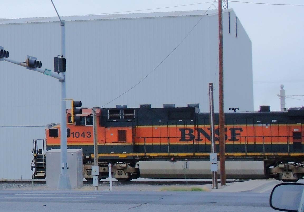 No. 1030 was on the point of a freight eastbound at Kingman, AZ on June 12, 2004. Here the train is switching some cars at an industry on the east side of town. |