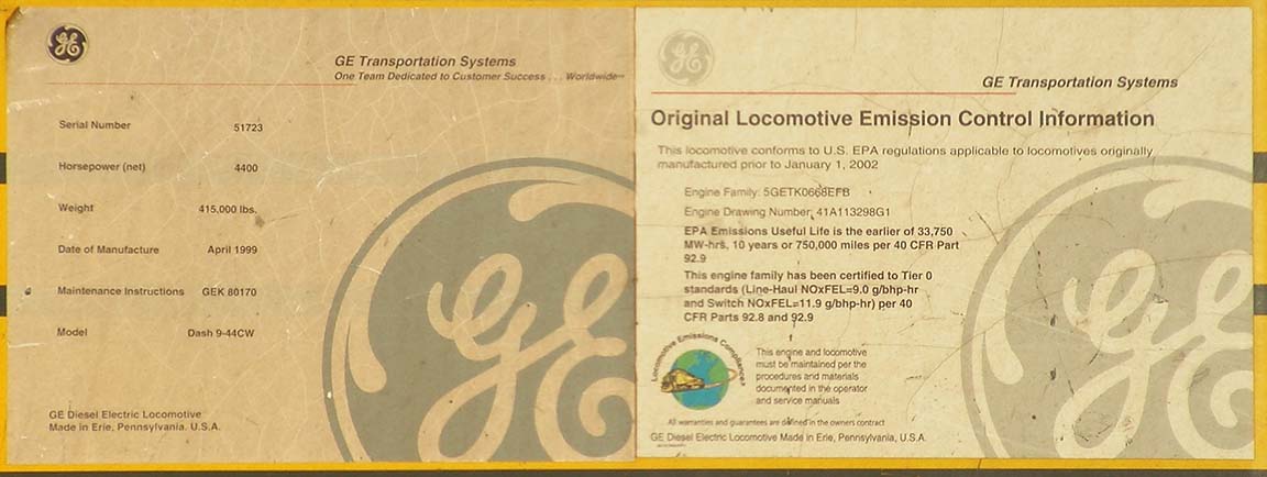 No. 1034 is shown here undergoing some kind of high-altitude emissions testing in Alamosa, Colorado (8/07/2020). Here’s the builder’s plate. NEW PHOTOBuilt October 1996. |