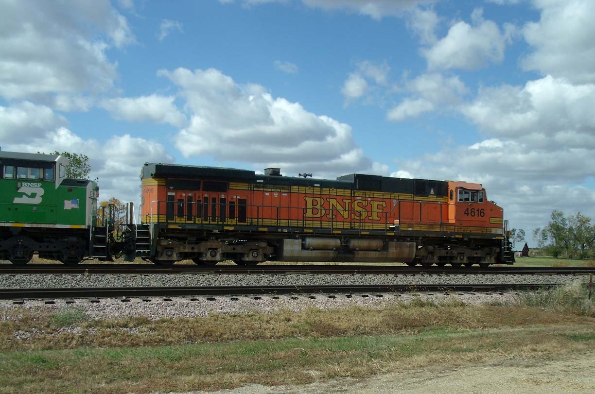 No. 4616 is on the point of an eastbound freight at Ruthton, MN on 9/29/2011. (Notice the “triclops” SD60M to the left; see here.)Built January 2000. |
