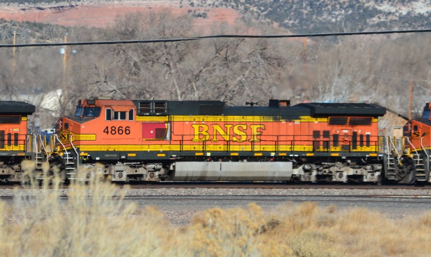 No. 4835, leading remote unit eastbound into Gallup on 1/21/2019. NEW IMAGE |