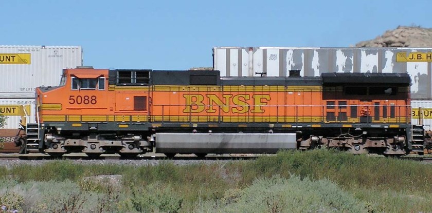 No. 5088 is rolling east at West Gallup on 9/11/2010, passing a westbound JB Hunt train.Built June 2004. |