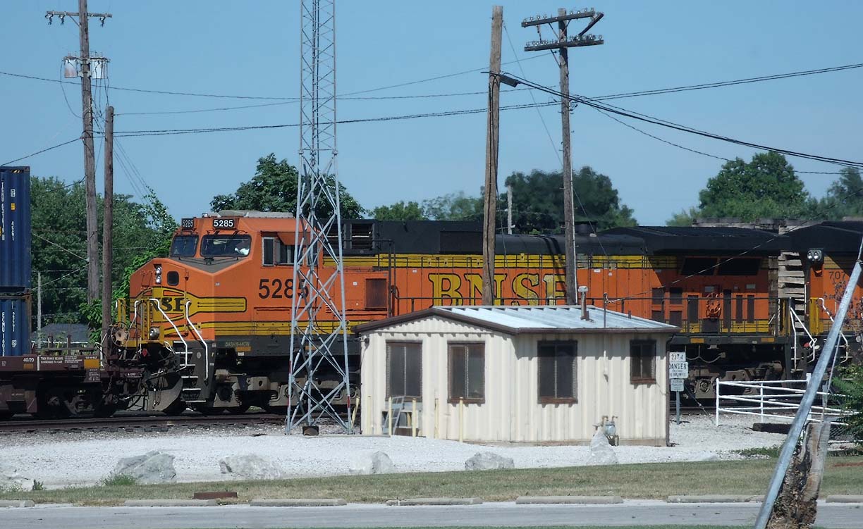 Cluttered view of No. 5285 rolling east through Springfield, MO on 9/03/2013 on a stack train. Built August 2001 |