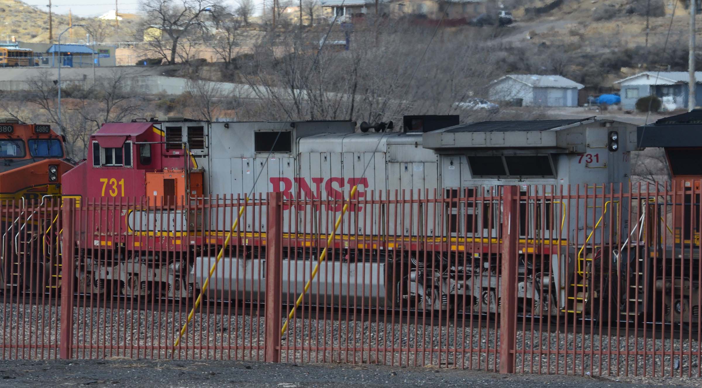 No. 731, at Gallup on 1/21/2019. The fence is unfortunate, but my options were limited at that moment.Built for BNSF in July 1997. |