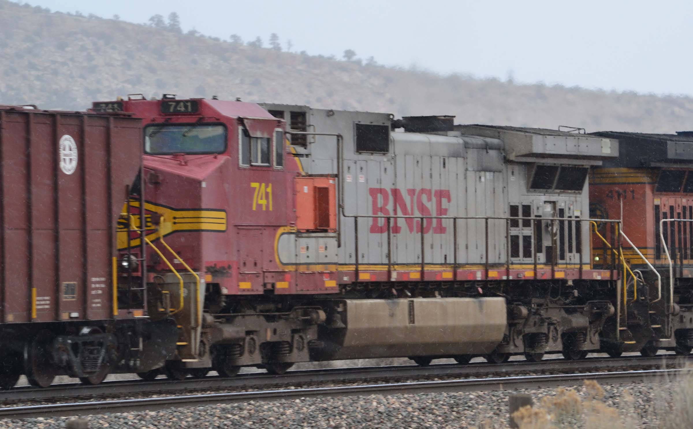 No. 741, west of Gallup on 1/21/2019. The blurriness is due to the air being full of blowing snow.Built for BNSF in August 1997. |