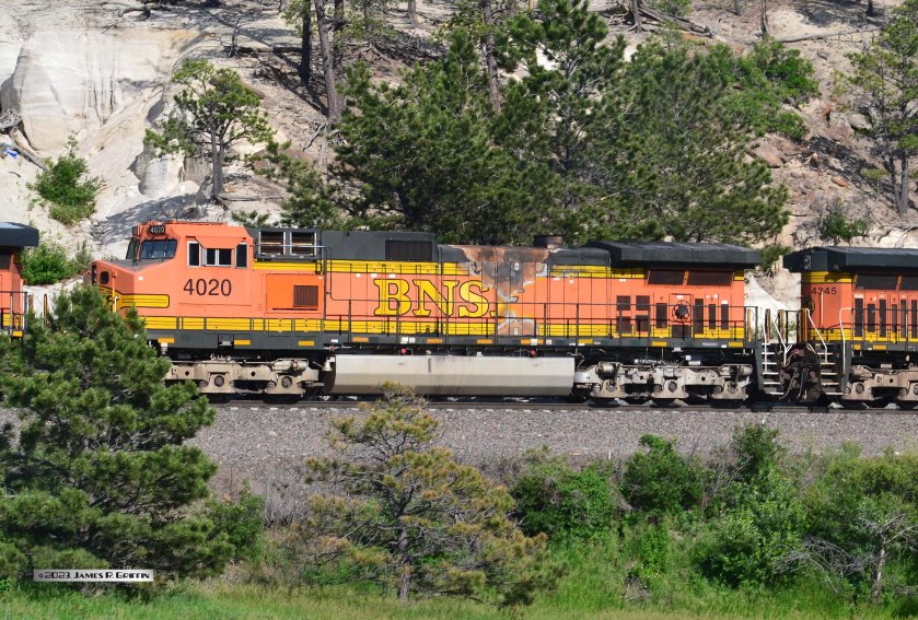 No. 4020 shows off the aftereffects of the GE “toaster” phenomenon as it runs on the Joint Line north of the Air Force Academy (7/02/2023). Built September 2003, 20 years before this photo. NEW IMAGE |