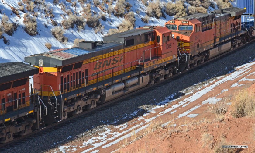 I found this one hiding among my images: No. 1065 has been repainted in New Image (after a wreck in June 2006), and has a strange boxy stack installed here on New Years Day 2021. It’s eastbound at Continental Divide, NM. See the photo of #1034 above; I bet this stack has something to do with that. Built November 1996.NEW PHOTO |