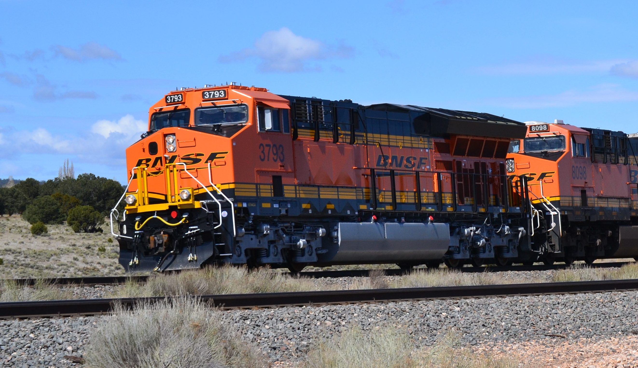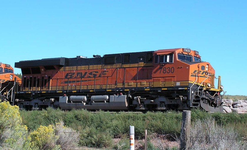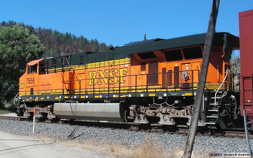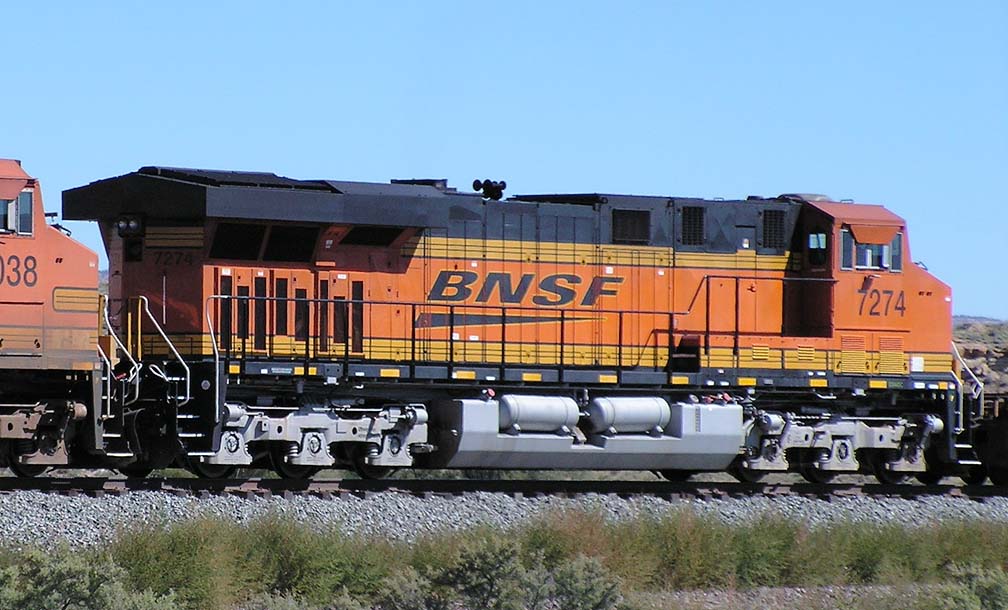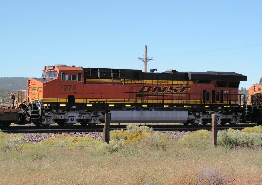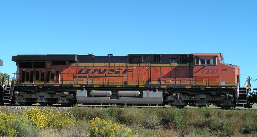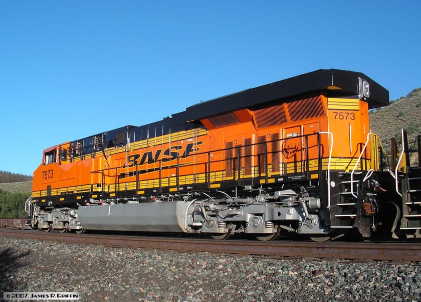 BNSF has purchased thousands of the emissions-friendly GEVO series, in several different models– both DC and AC traction, and the interesting ES44C4 and ET44C4 versions with only four powered axles in an A-1-A A-1-A arrangement.
