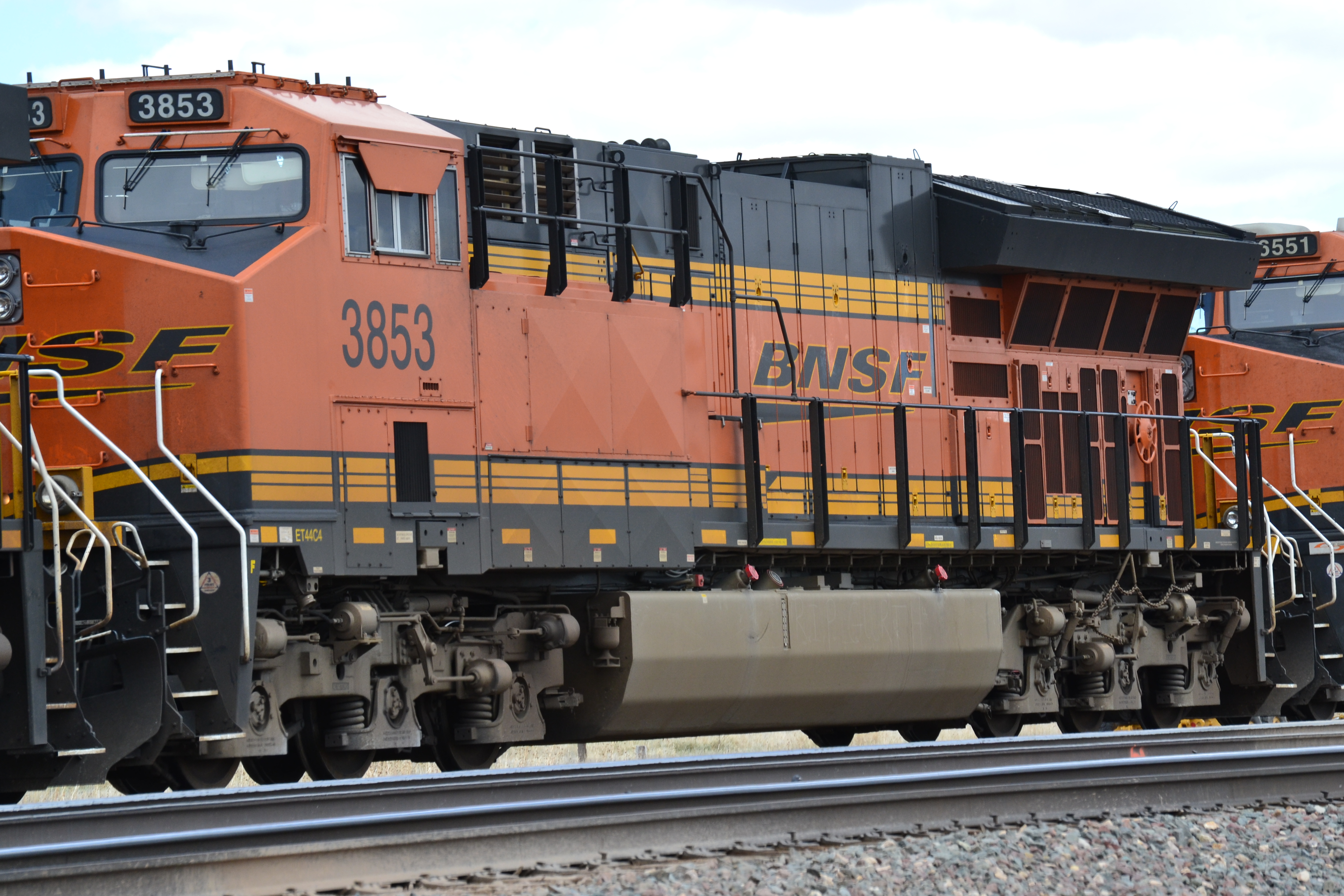 ET44C4 No. 3853, in Gallup on 4/27/2016. Kind of a tight shot; I was too close with my telephoto lens…Built September 2015. |