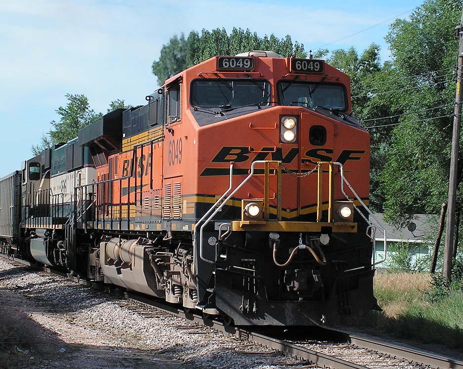 ES44AC No. 6049 leads a northbound coal empty through Longmont on 8/01/2010. I don’t see many of these in my normal haunts, but they are a numerous class on the BNSF nonetheless.Built in August 2006. |