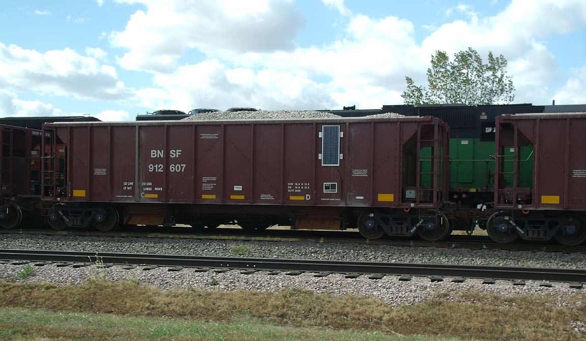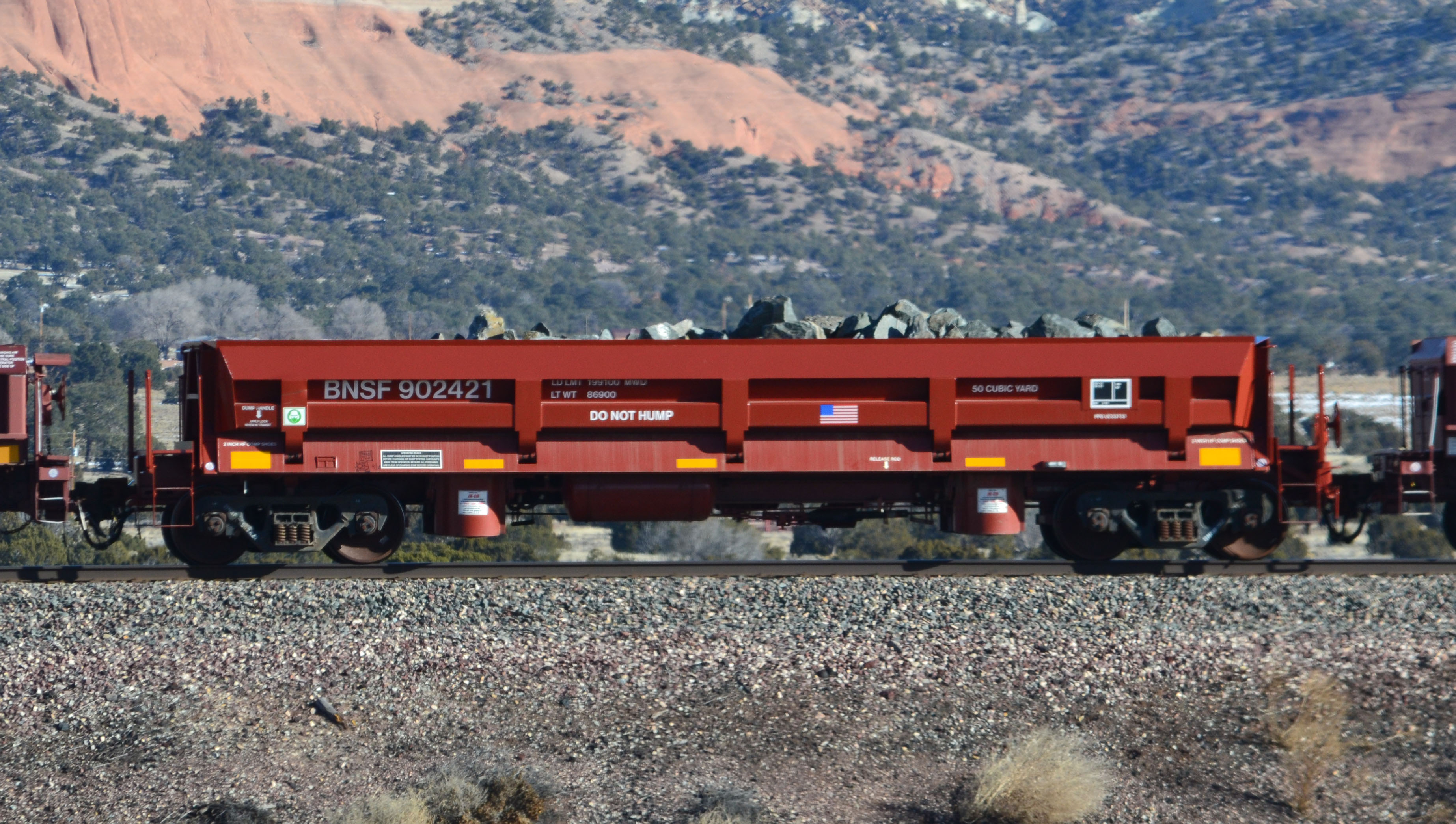 Autorack on BNSF 300769, rack No. 28869. New Image herald. Notice how the end of the rack is stenciled with the flatcar’s number, not the rack number (this is usual practice, just an interesting detail). This car is so new, it doesn’t even have graffiti yet!