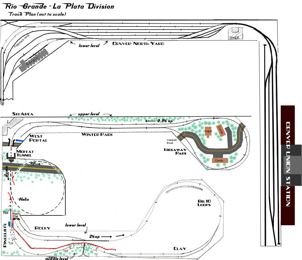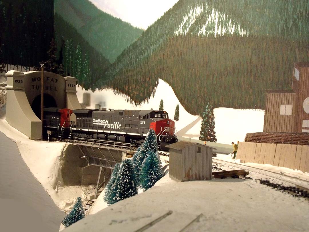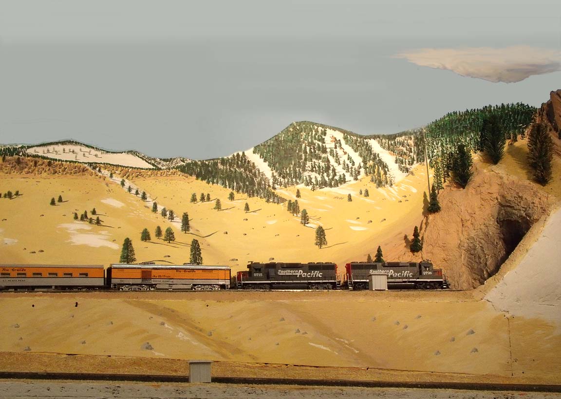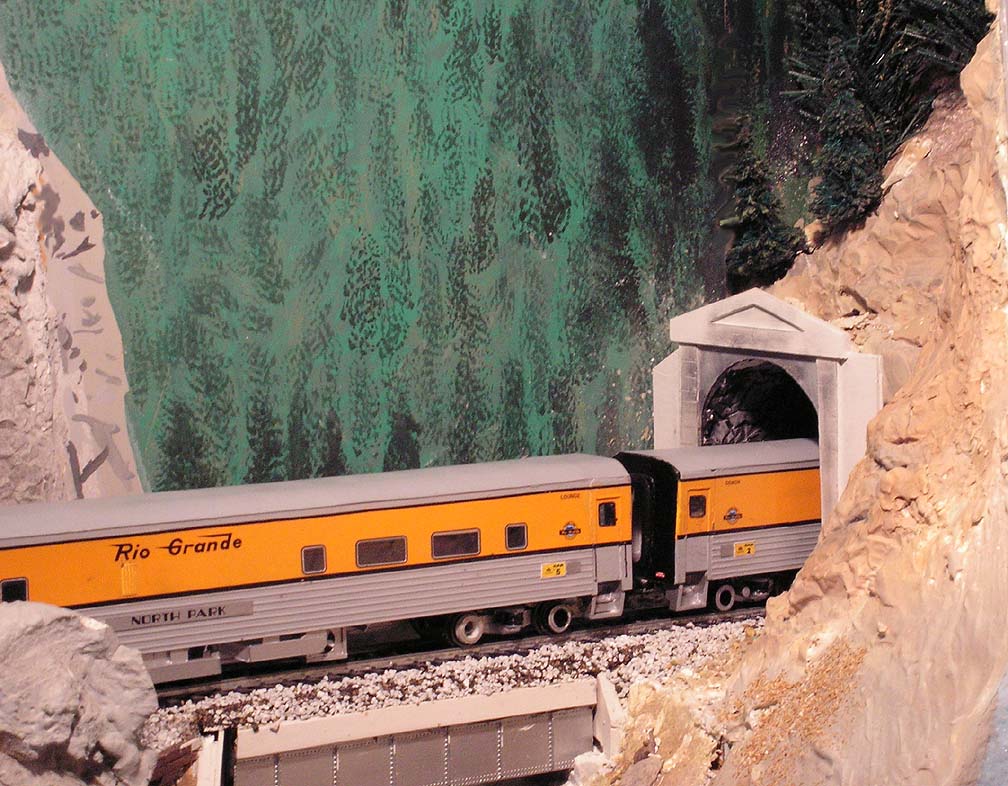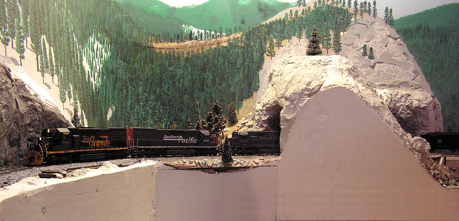 After passing Pinecliffe, the train transits the last short tunnel east of the Divide, Tunnel 30. (On my layout, things are rather compressed in this area!) |