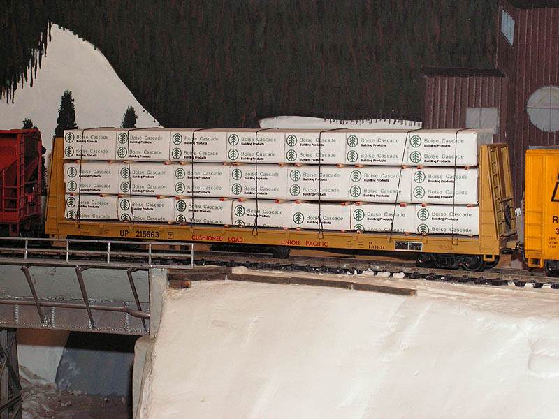 I scratch-built this lumber load for a UP bulkhead flatcar. It was one of my earlier such projects, and turned out decent. |