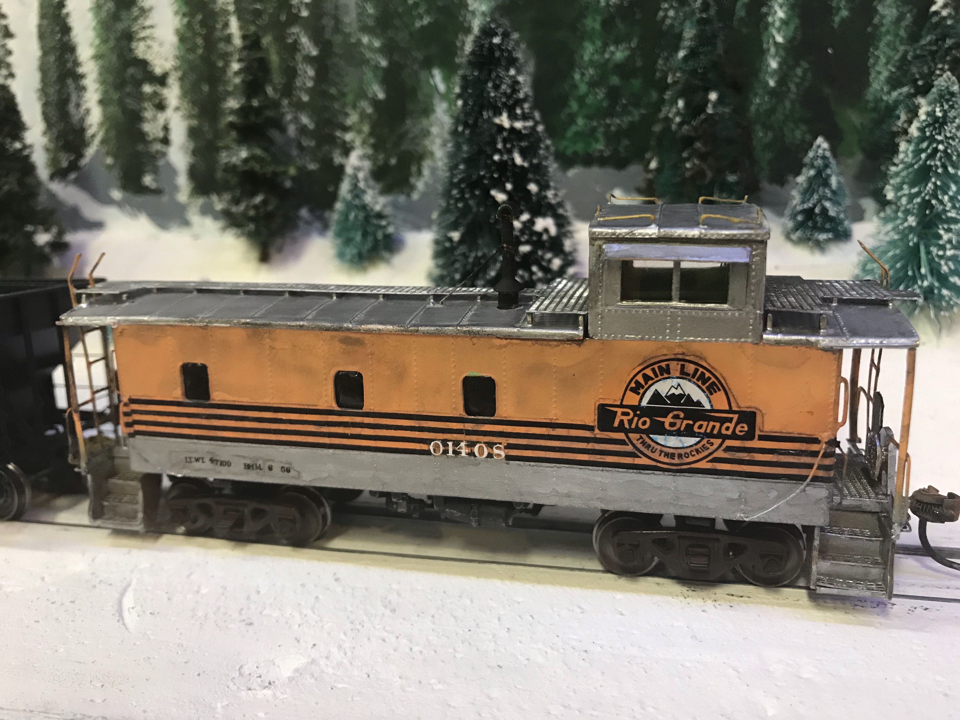 I only roster Rio Grande cabooses on the La Plata Division, due to era constraints. Rio Grande cabooses present some unique challenges. The largest class of cars on the roster (numbers 01400-01490) were built by the railroad in its own shops. There are a couple of commercial models available but they are expensive and can be hard to find. The other type, the wide-vision cabooses built by International Car, came in two sub-classes, and nobody makes a completely-accurate version. The modeler is left with a decision to make: How accurate do I want to be?