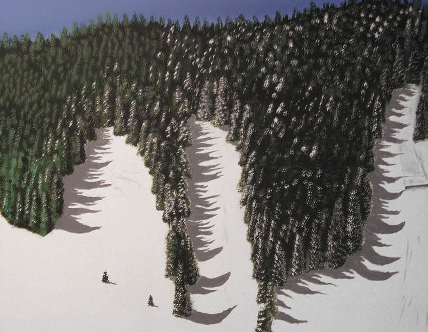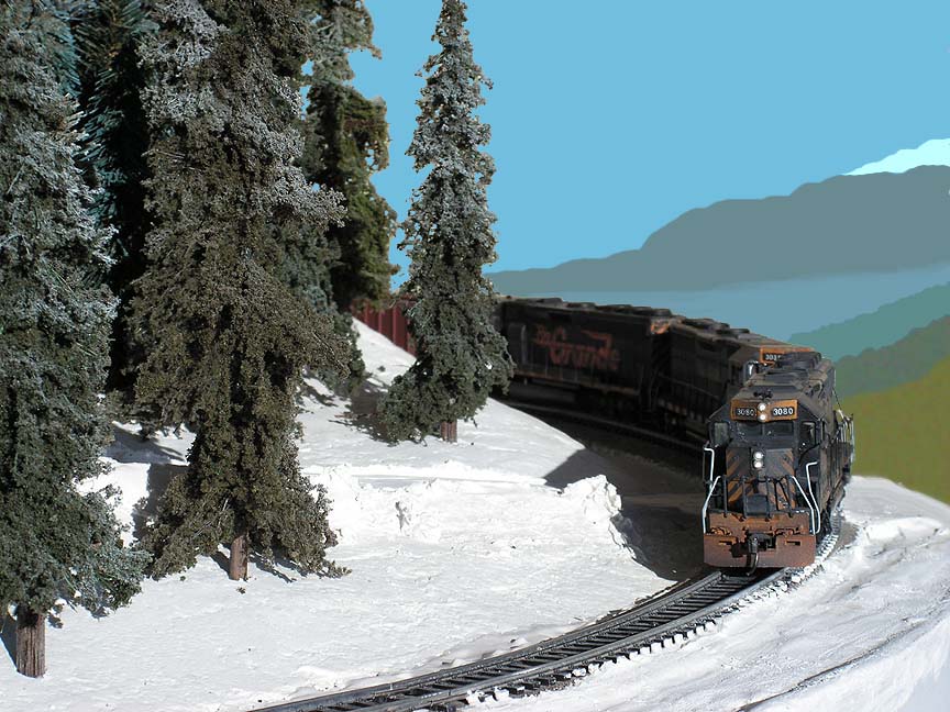 - The Winter Park siding area is mostly done. The backdrop itself is largely complete. I also need to paint a few hundred skiers on the slopes…
