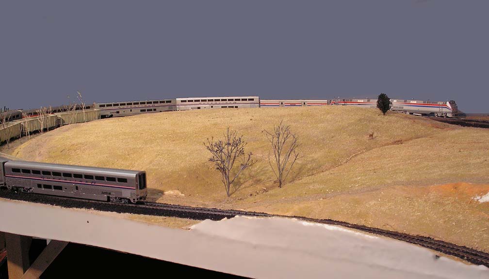 (By the way, on my layout, the train isn’t really 73 cars. Just thought I’d point that out, in the interest of full disclosure… Also, drivers of HO scale autos don’t curse either!) |
