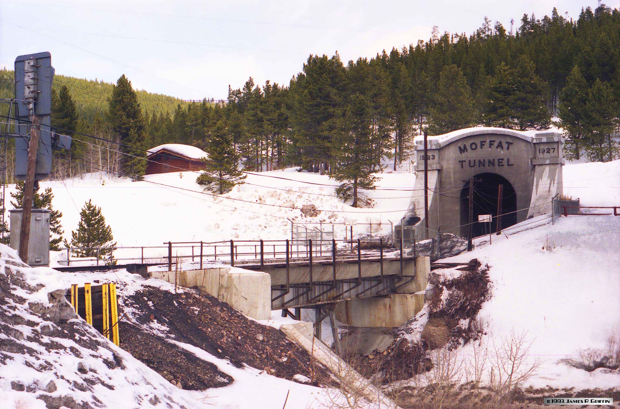 Bridge and tunnel: the west portal of the Moffat Tunnel as it appeared in 1993. The scene has changed considerably since then, with the addition of camera bridges and new service buildings, signal replacements, ski resort additions, etc. UPDATED IMAGE | ||