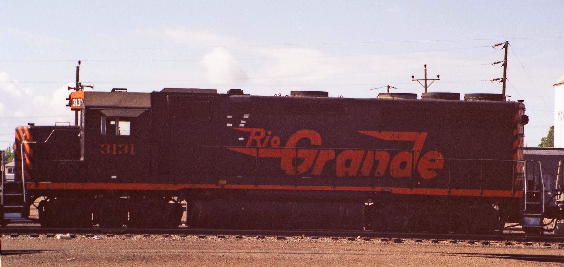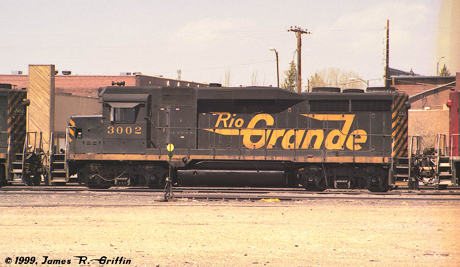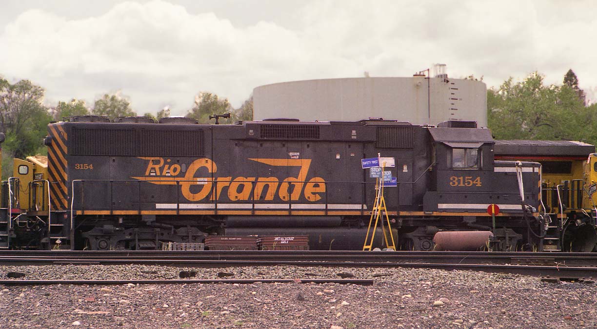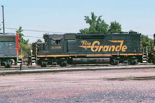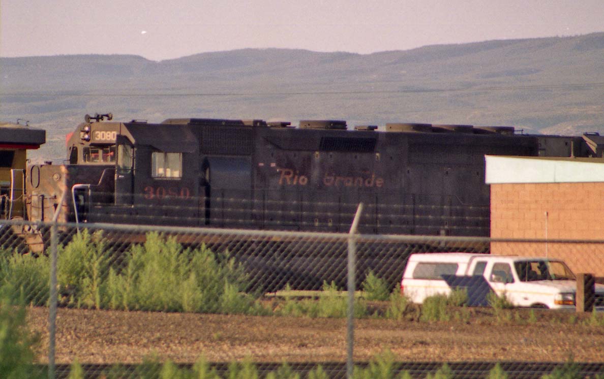 Sometimes you just have to take what you can get… Here is GP40 No. 3080, buried deep in the readyline area at Grand Junction (8/03/1998). It’s mostly original, minus the low-nose lights. This is the highest numbered unit to receive the small “flying” Rio Grande herald.