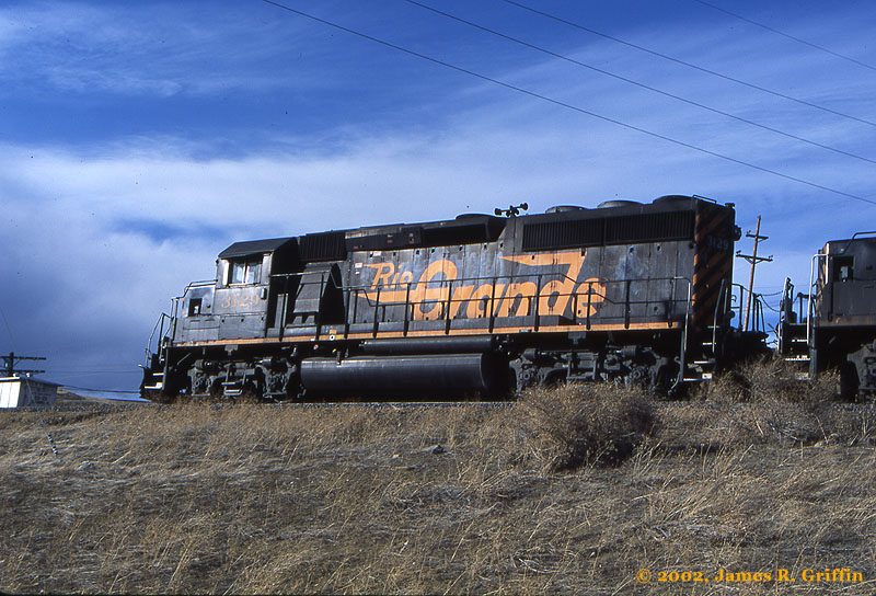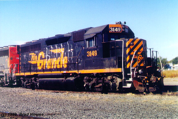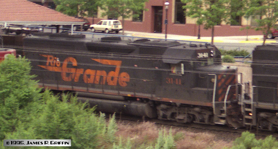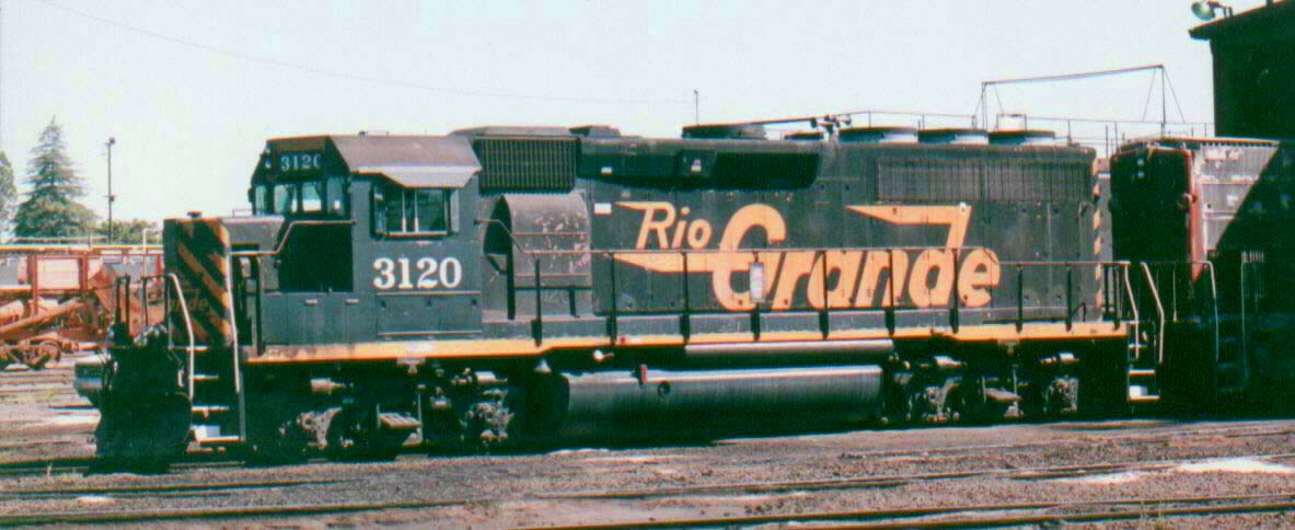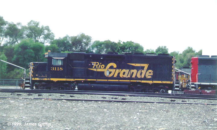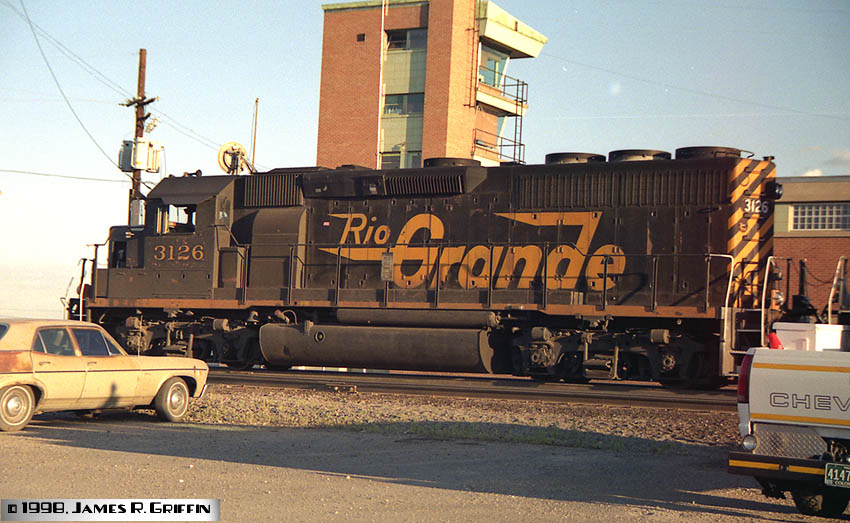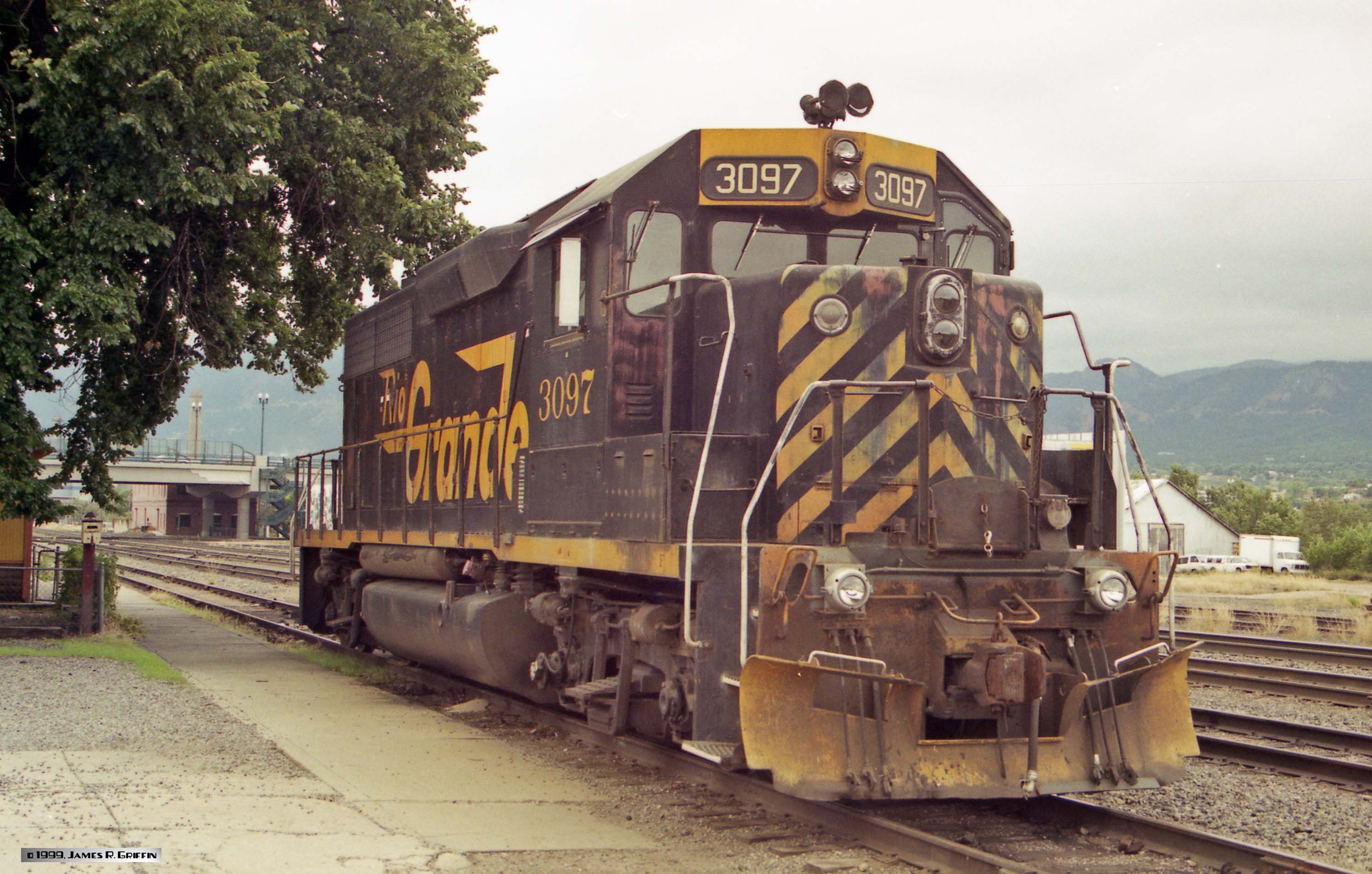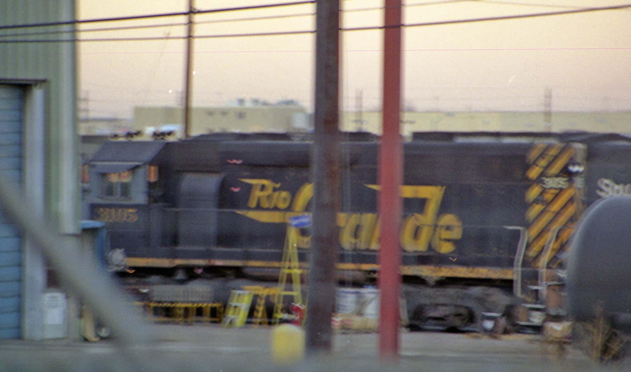 Sometimes you just have to take what you can get… Here is GP40 No. 3080, buried deep in the readyline area at Grand Junction (8/03/1998). It’s mostly original, minus the low-nose lights. This is the highest numbered unit to receive the small “flying” Rio Grande herald.