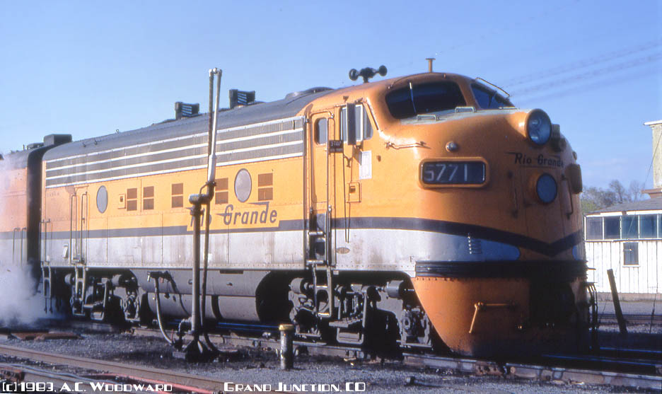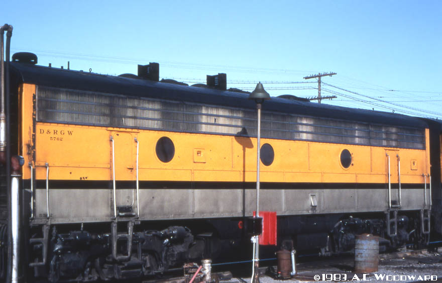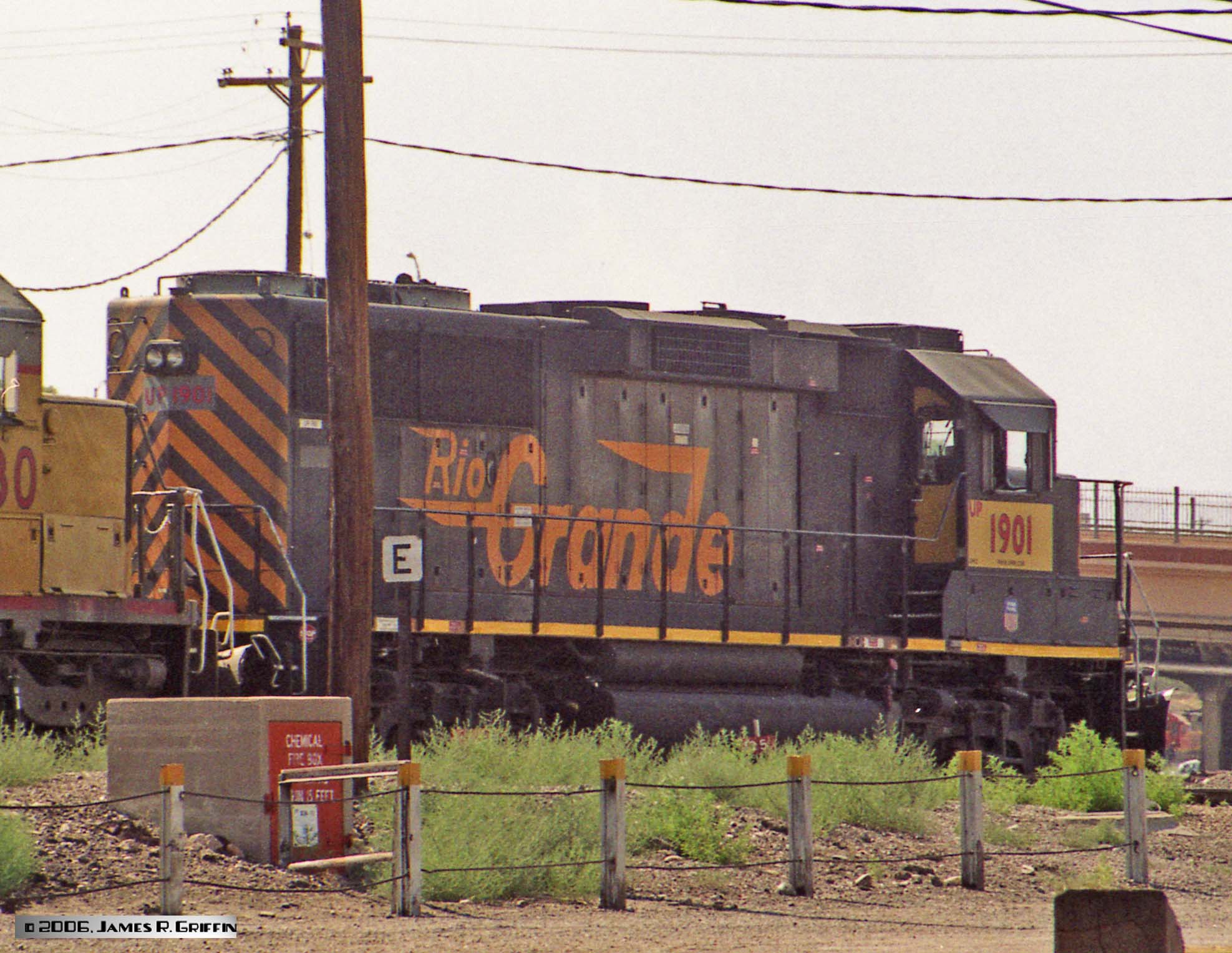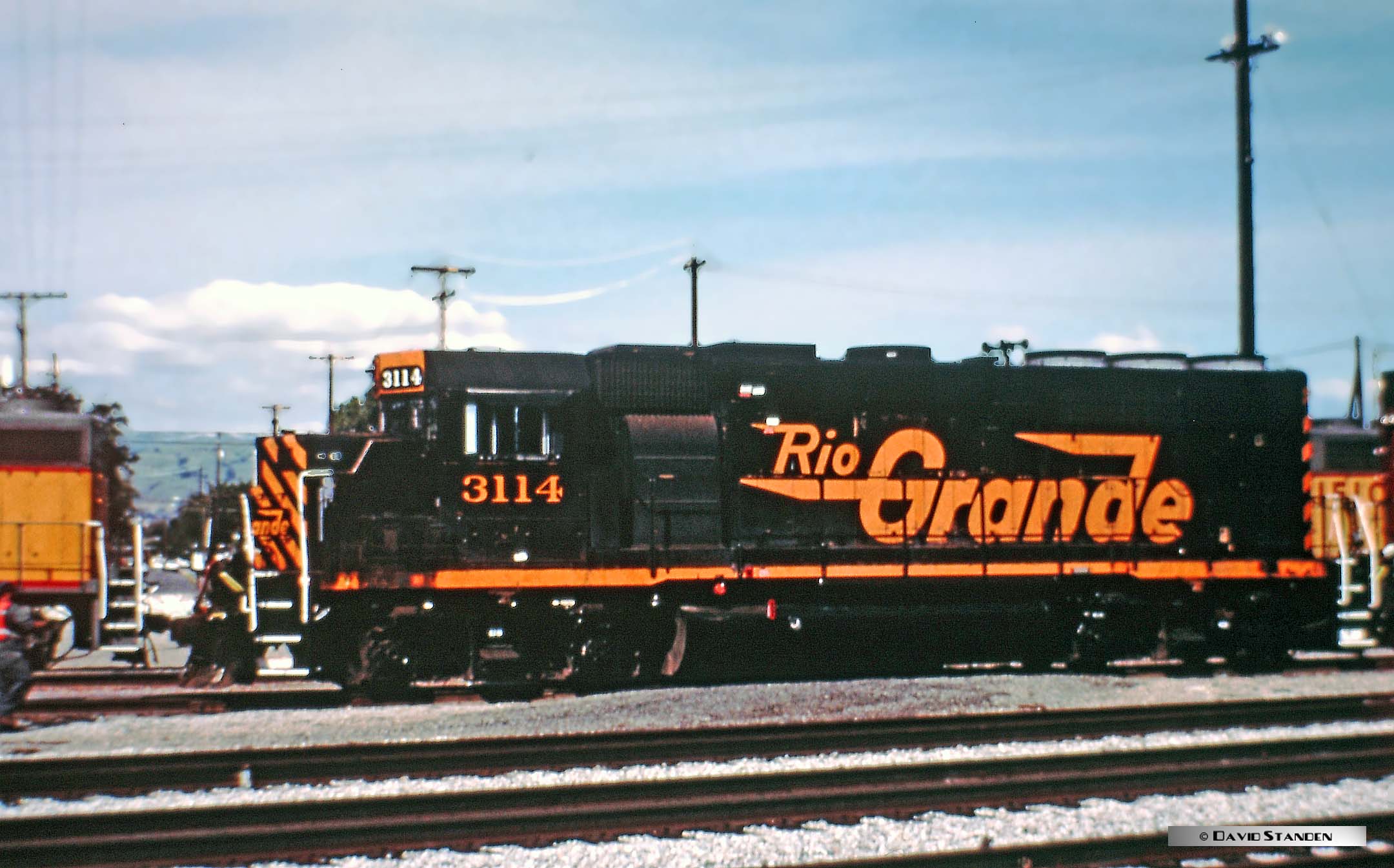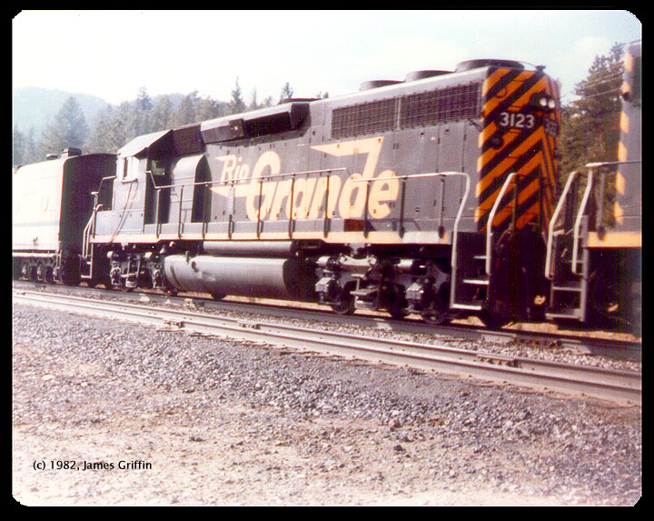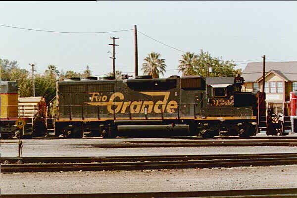 Sometimes you just have to take what you can get… Here is GP40 No. 3080, buried deep in the readyline area at Grand Junction (8/03/1998). It’s mostly original, minus the low-nose lights. This is the highest numbered unit to receive the small “flying” Rio Grande herald.
