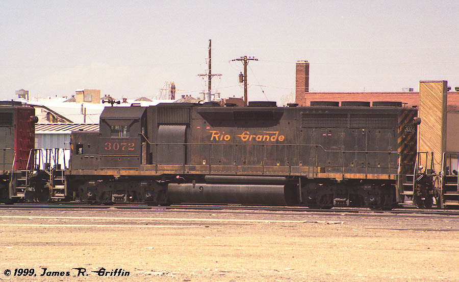 GP40 No. 3072 — At Alamosa, May 14, 1999. It was in the MPUAA road power consist, waiting for the locals to finish their chores.