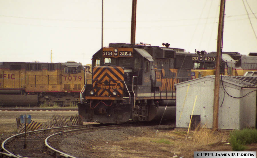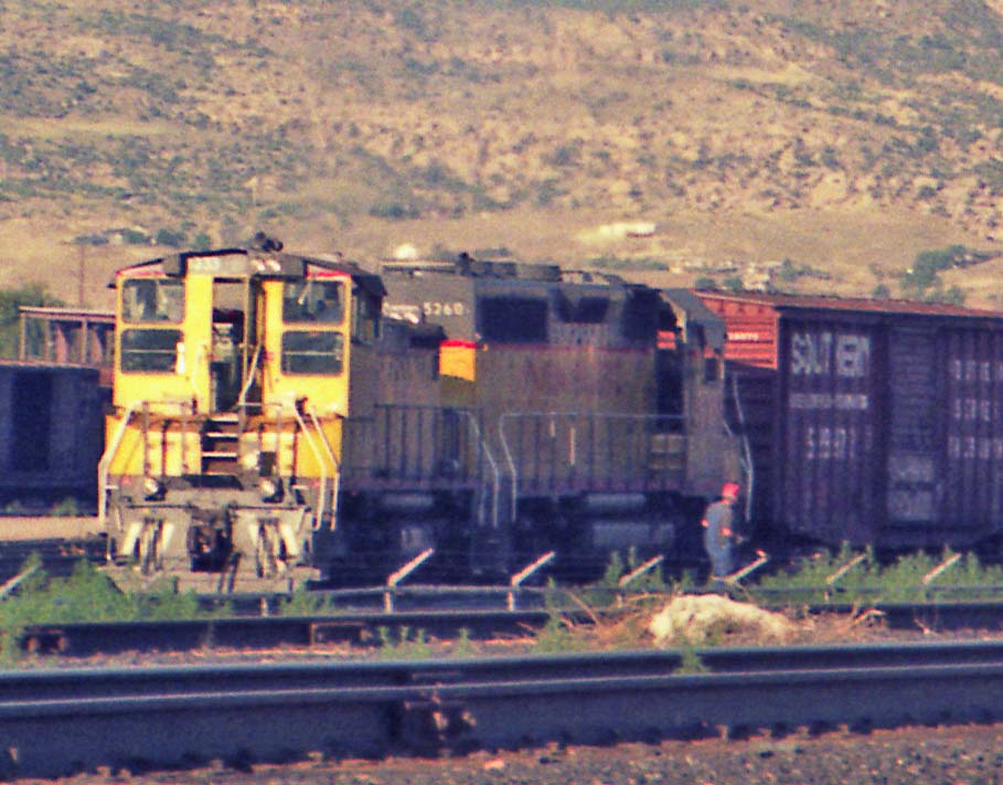 GP40-2 3106 was an early repaint into UP colors after the merger. Here it’s switching Grand Junction yard (no longer a hump yard now) in August 1998, wearing its new paint and number (UP 5260). | ||