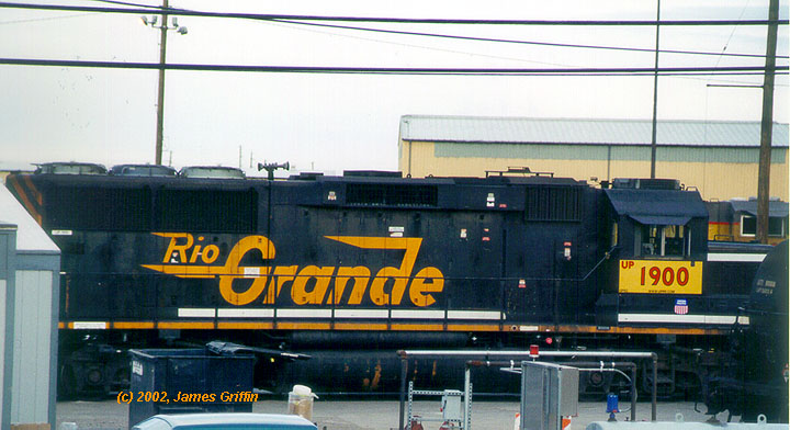 Top: Seen in Pueblo in early 1990 (at left). Note that it’s got a freshly cleaned (painted?) pilot, whereas the rest of the unit is filthy. I’ve not seen this condition much on Rio Grande units, which makes me wonder if there wasn’t some kind of repair done. David Standen photo. NEW IMAGE Bottom: It survived unscathed through the SP era, but was quickly repainted as shown after the UP merger (May 1997). It was renumbered to UP 1447 in 2005. Photo circa 2000 by Duane Simmons. |