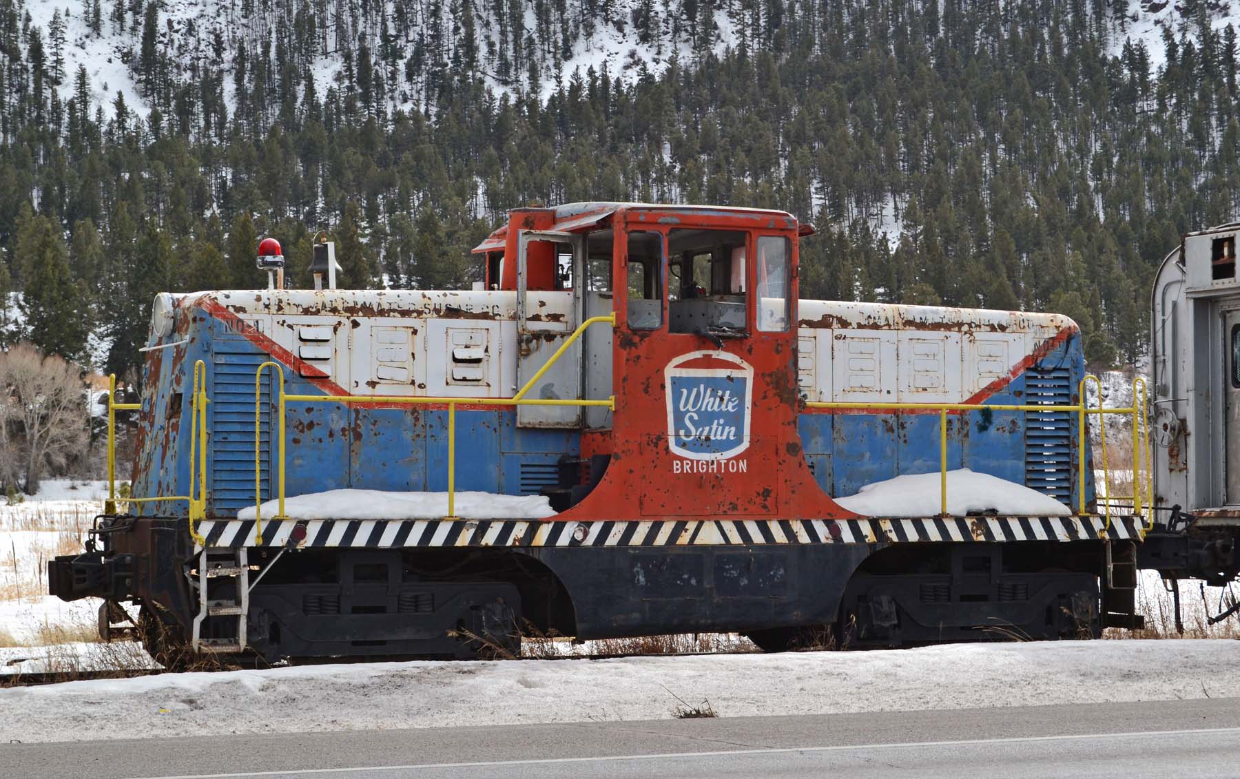 No. 3123 — On the Ski Train in January 1982 at Crescent, CO. Notice the dent in the fuel tank.