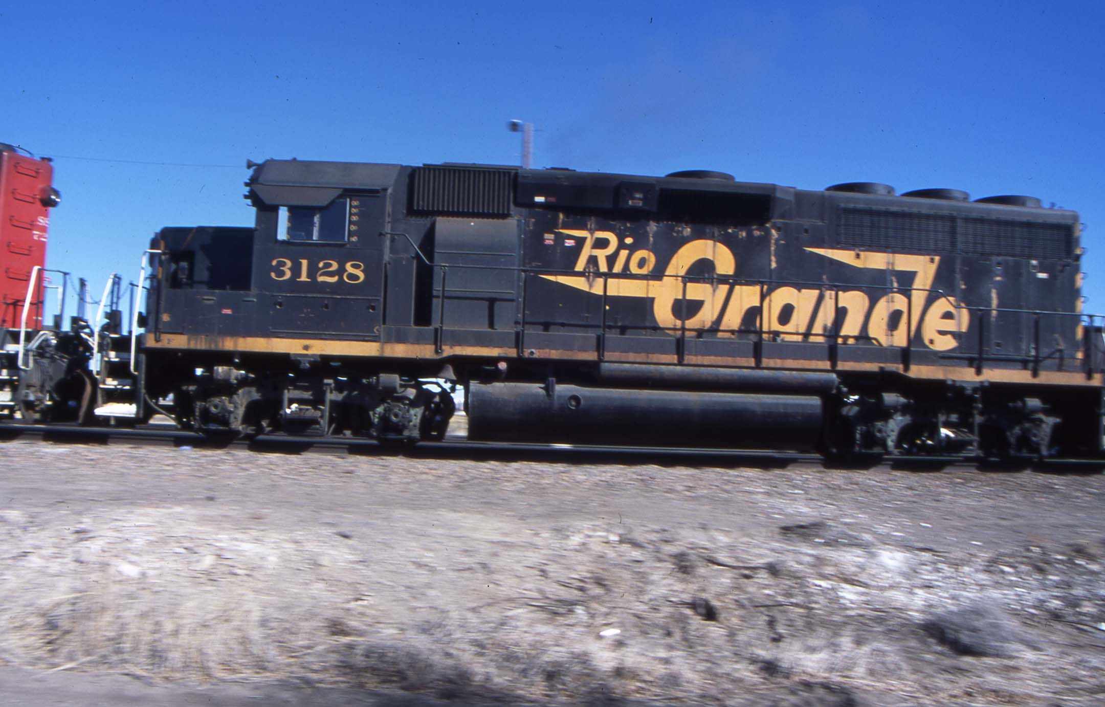 No. 3128 — The highest-numbered “standard” GP40-2, still at work in Alamosa on March 7, 2003.