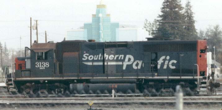 GP40 No. 3138, one of the ex-Conrail units, and one of three GP40’s that were repainted into the SP “Speed Lettering” scheme. Note the road initials below the cab number. It’s shown here circa 1999. Photo by Duane Simmons. NEW IMAGE