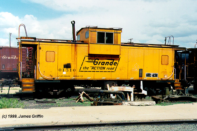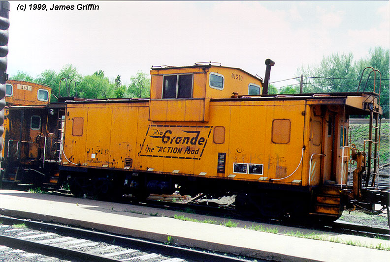 Top: Caboose No. 01510 at the Pueblo railroad museum by the historic depot (out of service) , 5/16/1999.Bottom: opposite side. | ||