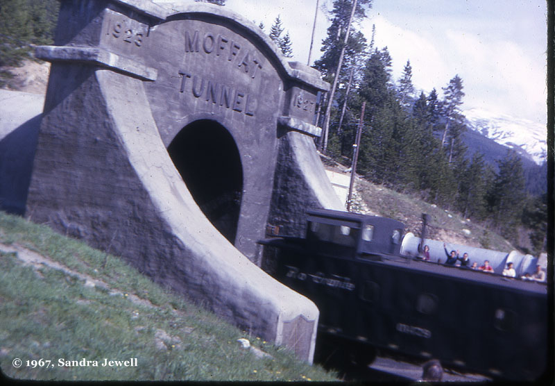 No. 01449, freshly shopped and repainted (even the trucks look clean), on the tail of an eastbound in Gore Canyon. It’s around 9/20/1978.Ken Albrecht photo. NEW IMAGE | ||